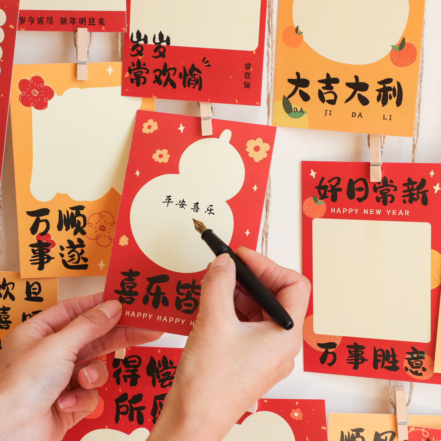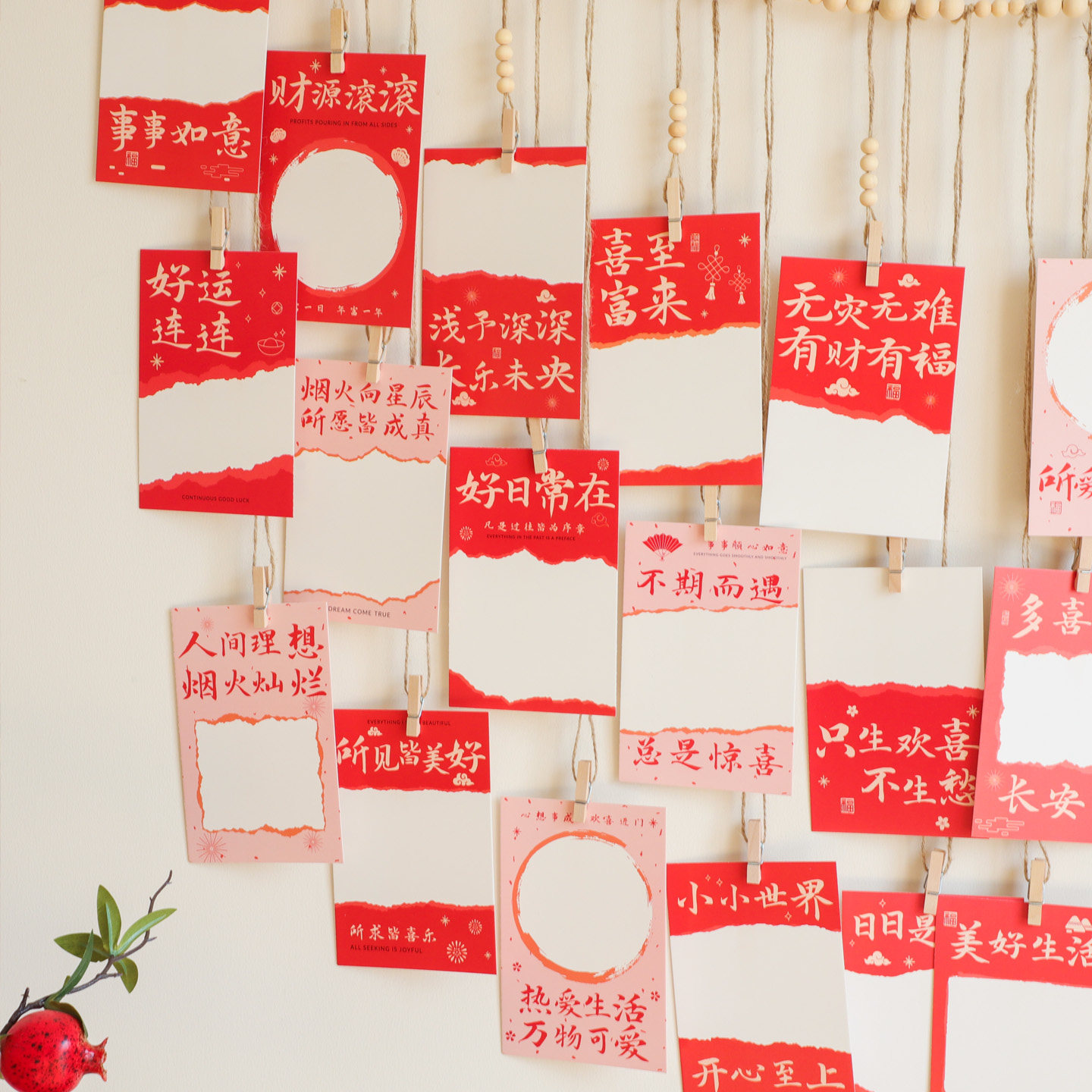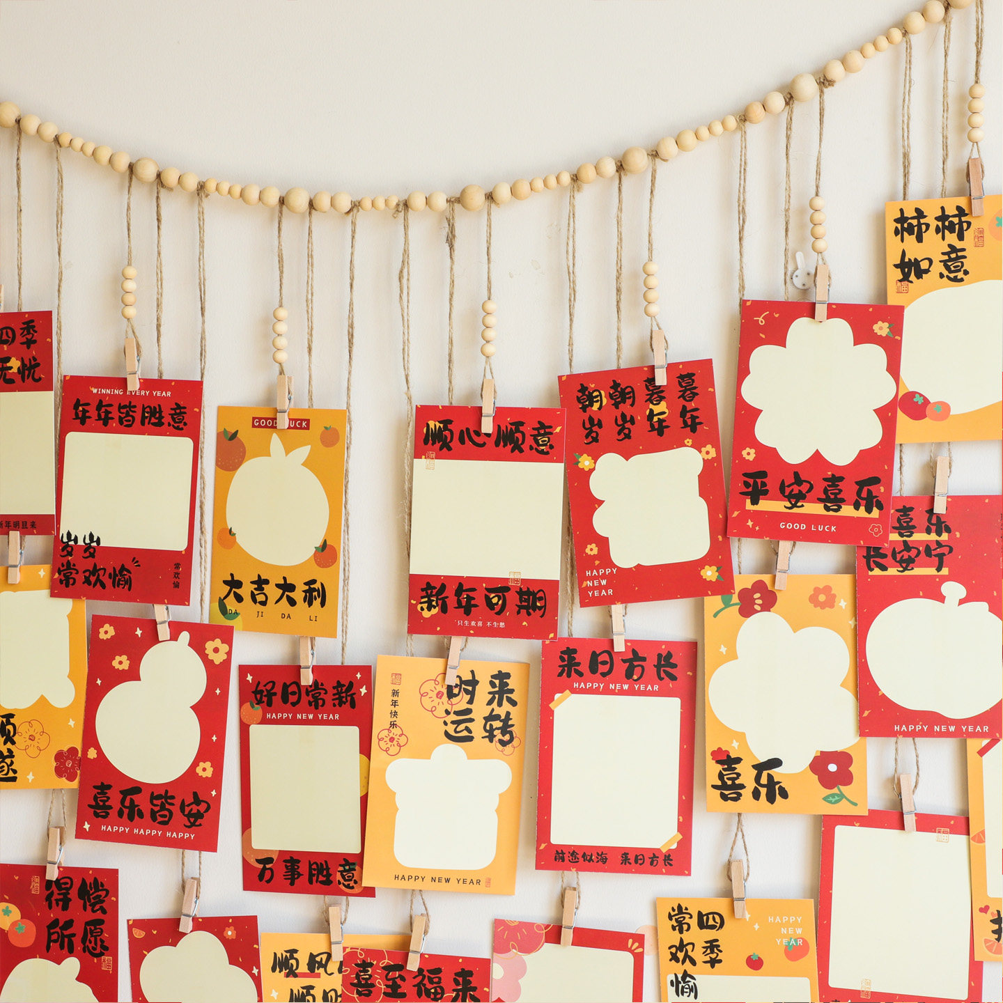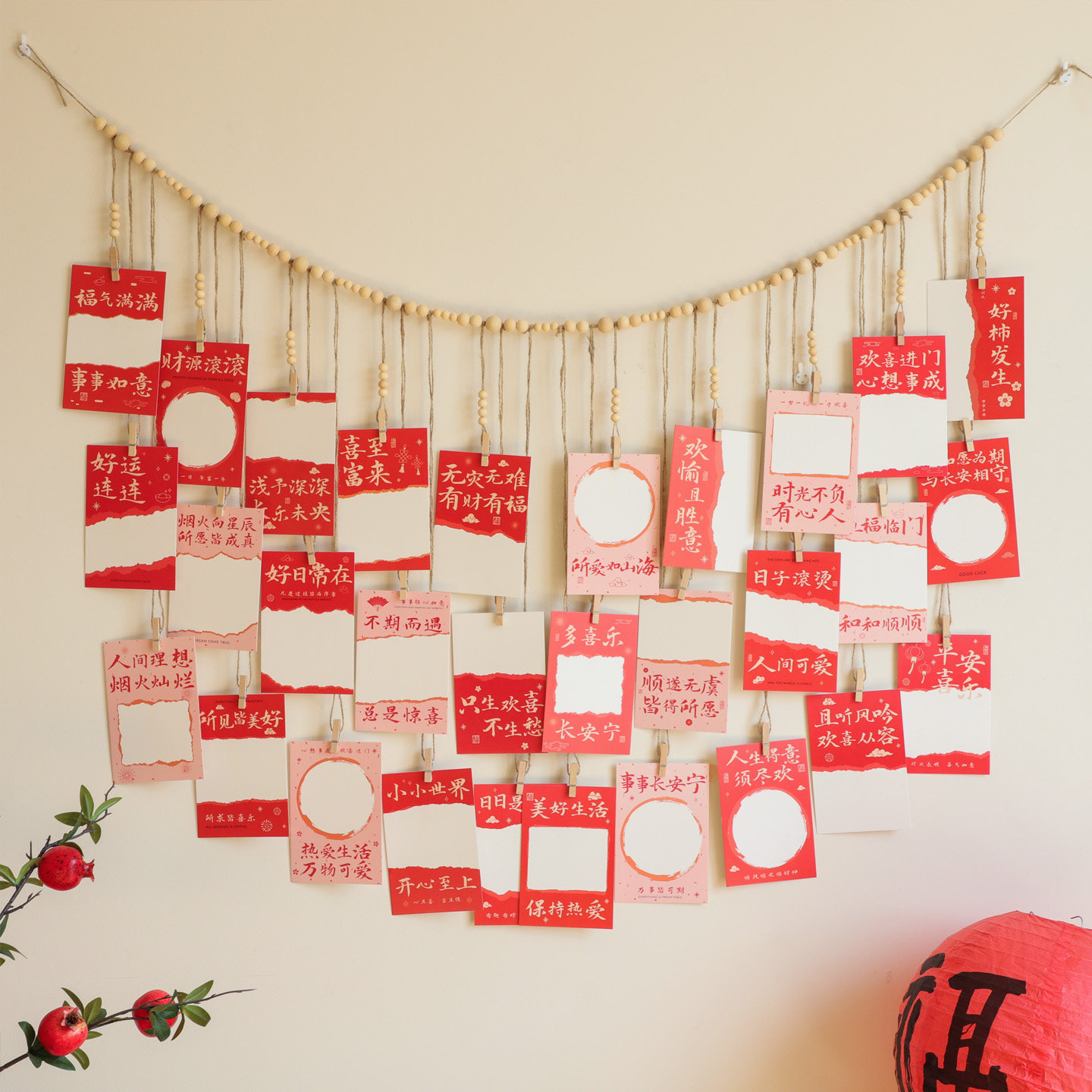 可书写diy卡片展示照片墙麻绳木夹串珠创意新年喜庆装饰祝福墙贴