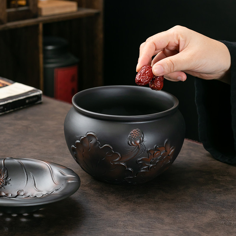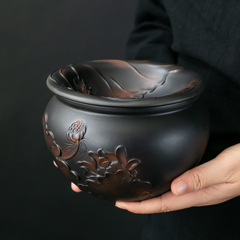 紫陶复古水盂茶洗茶渣分离废水缸家用大号粗陶过滤茶水茶道茶渣缸