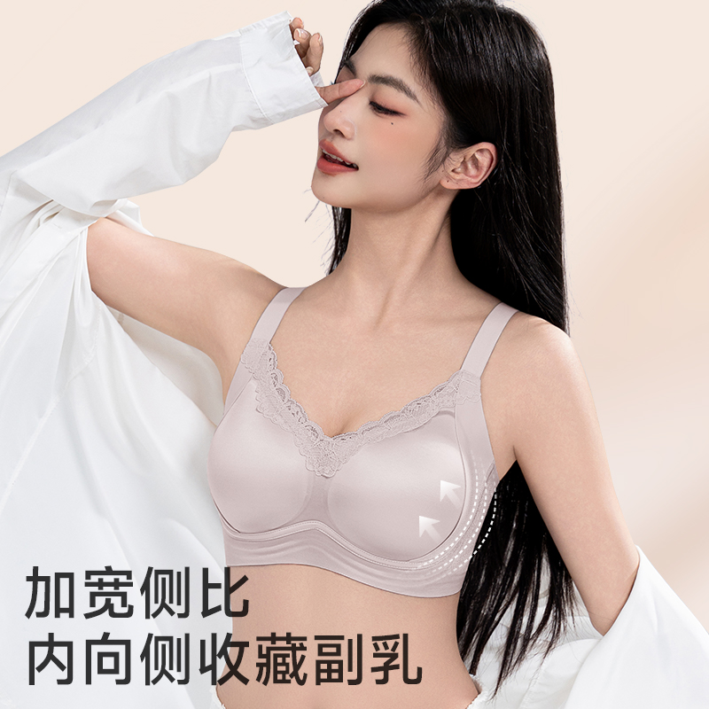 婷美内衣女山茶花香氛夏季新款轻薄聚拢提拉性感软蕾丝文胸套装