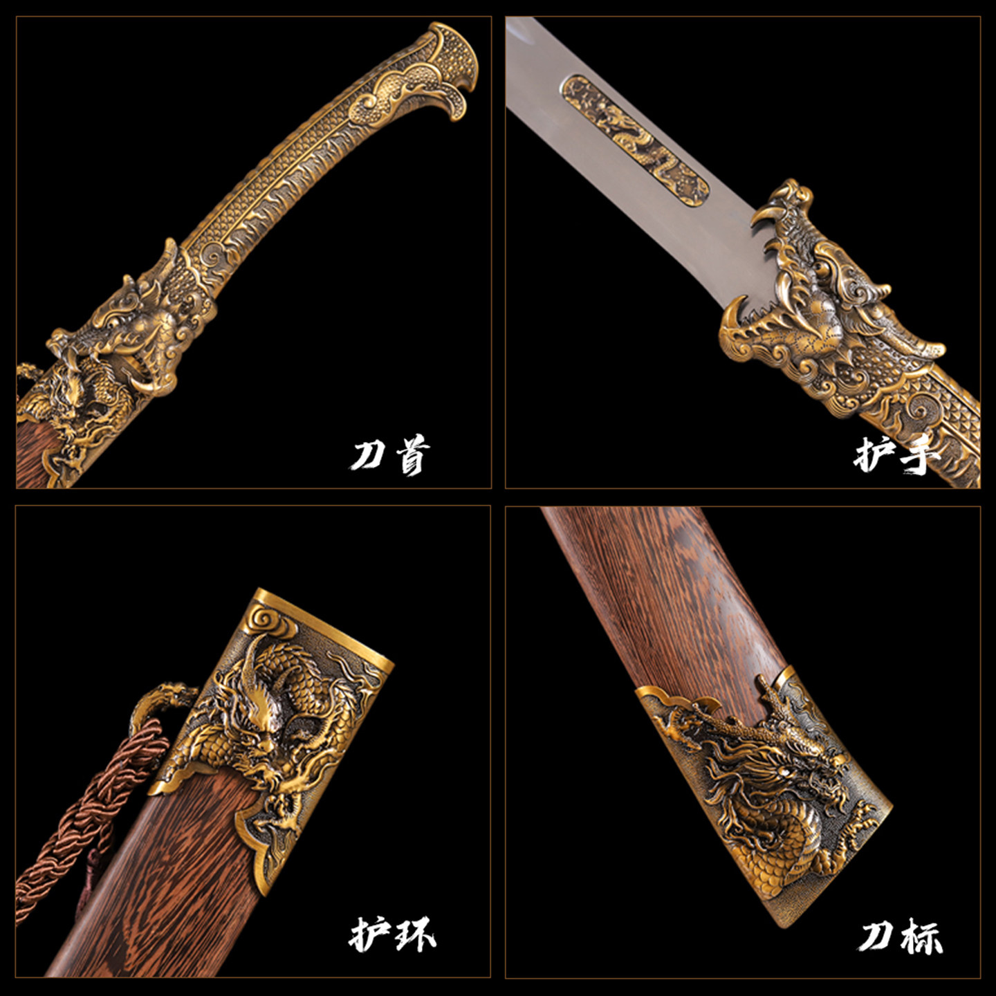 上新龙虎战刀清刀牛尾刀锰钢一体锻造收藏装饰镇宅工艺品未开刃