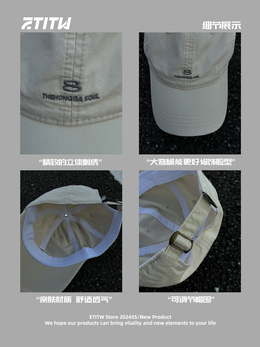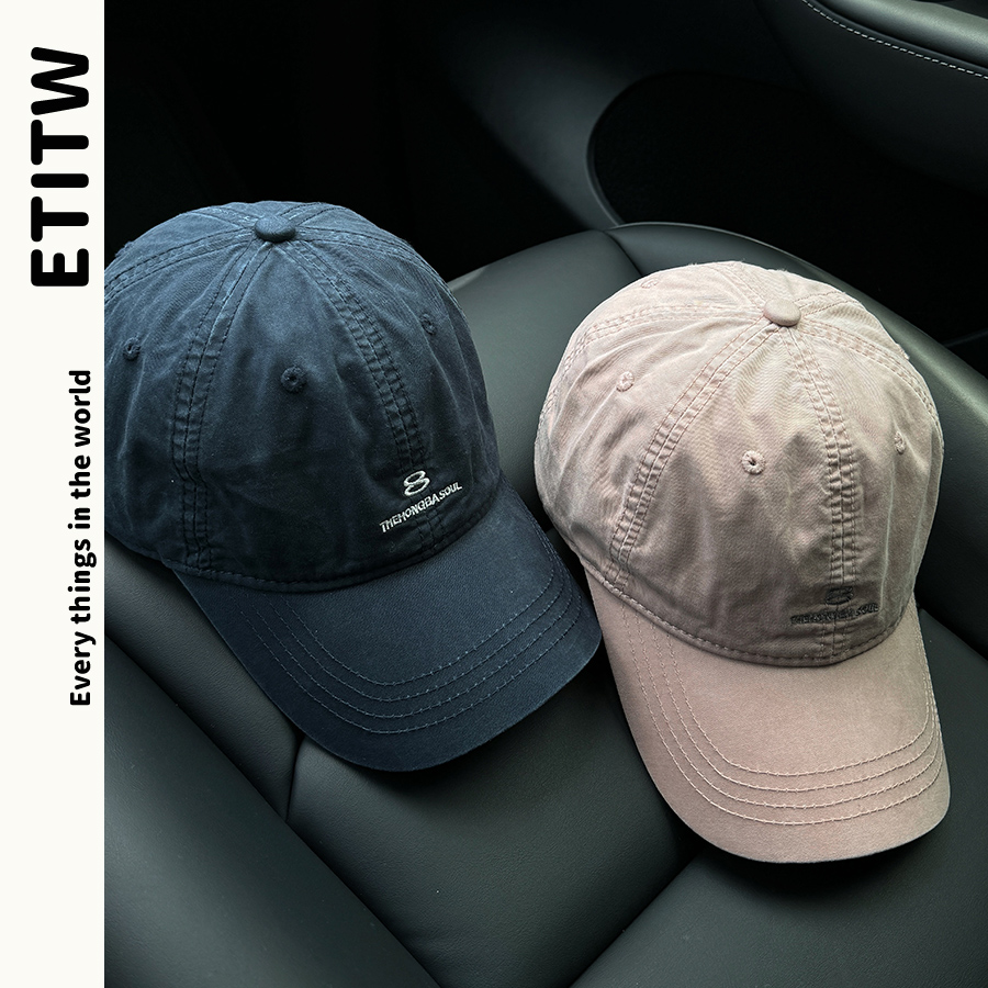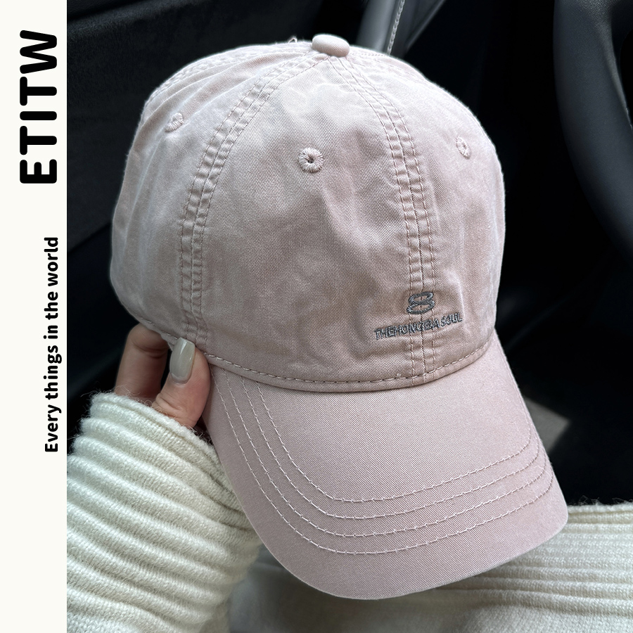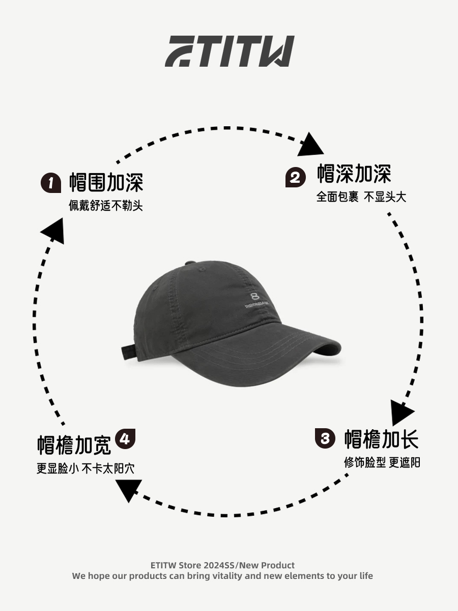 ETITW韩系街头刺绣字母水洗棉棒球帽显脸小防晒帽男女弯檐鸭舌帽
