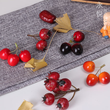 永悦高仿真假樱桃串水果山楂枇杷枣子泡沫模型摄影道具装饰品摆件