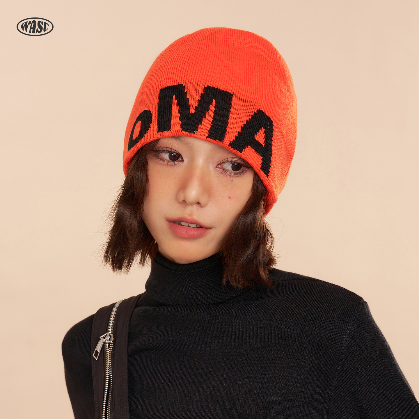 韩版小众设计感OMA字母毛线帽秋冬季大头围针织帽冷帽子男女款潮