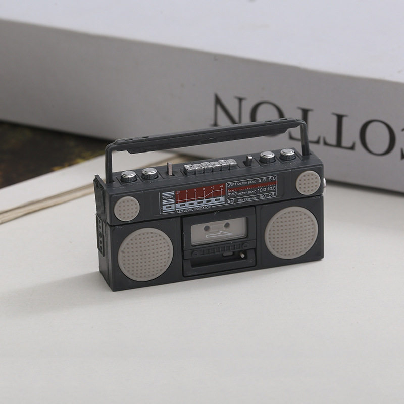 1:12娃娃屋迷你仿真复古收音机录音机食玩场景模型拍摄道具摆件