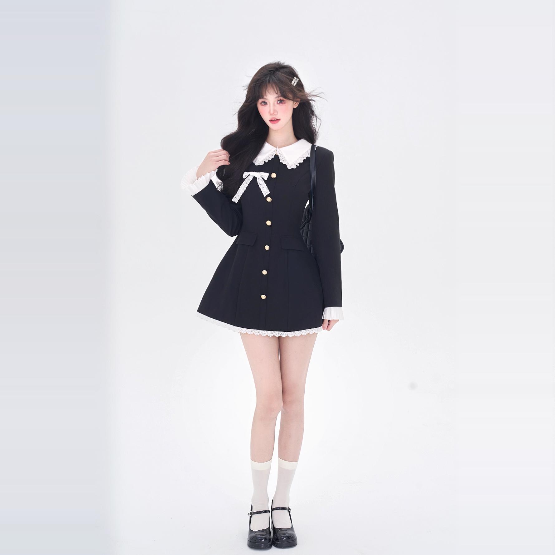 越韩小鱼 南洋少女 法式蝴蝶结蕾丝甜美学院风设计感收腰连衣裙秋