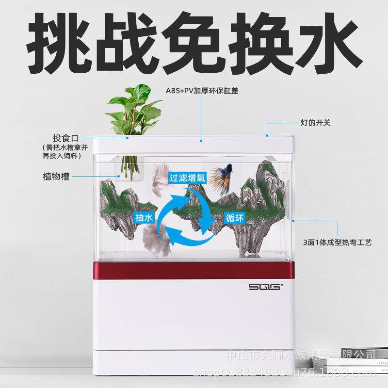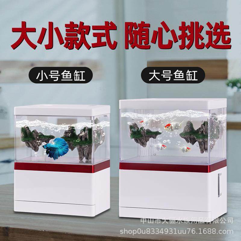 桌面生态小鱼缸 自循环家用创意造景生态缸懒人免换水小型金鱼缸
