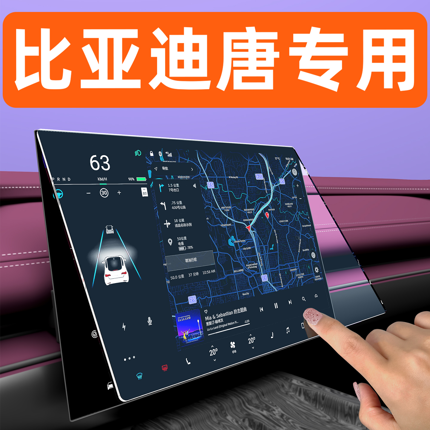 比亚迪唐屏幕钢化膜Dmi显示屏EV车内用品神器Dmp中控导航保护贴膜