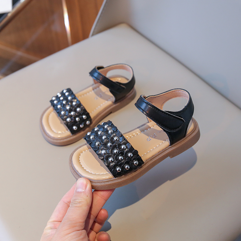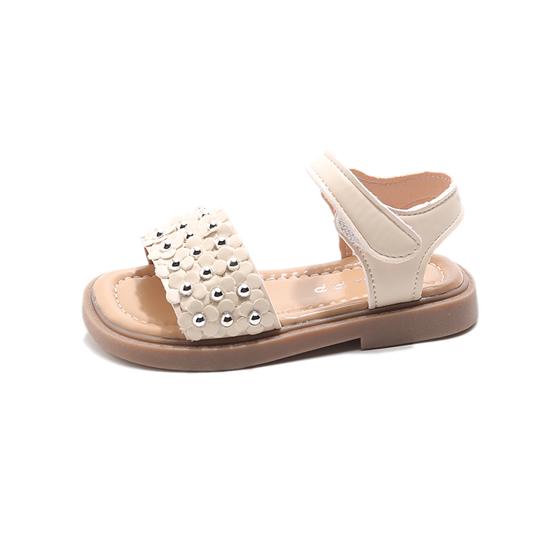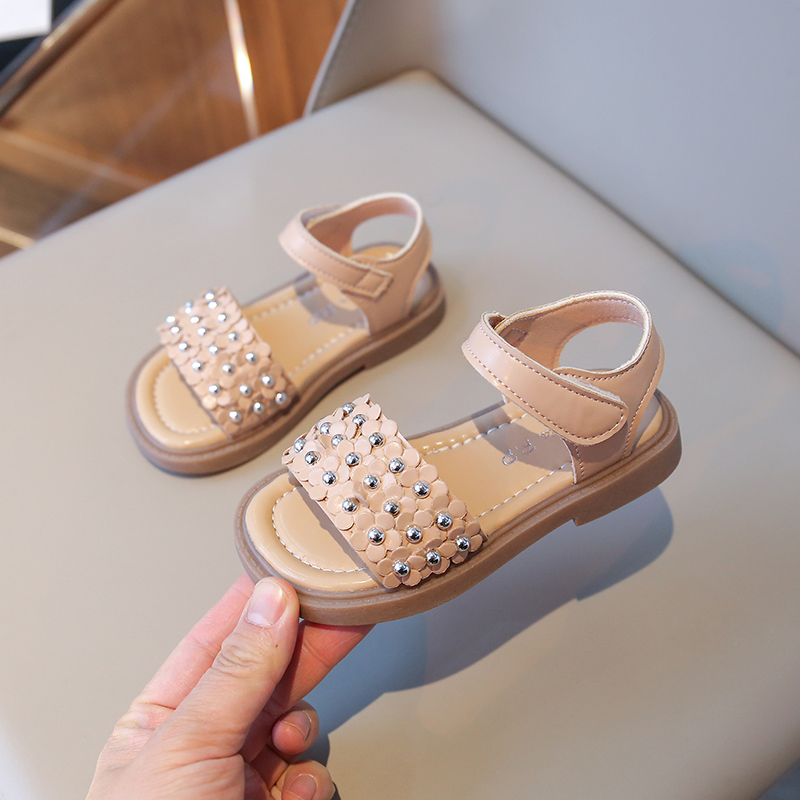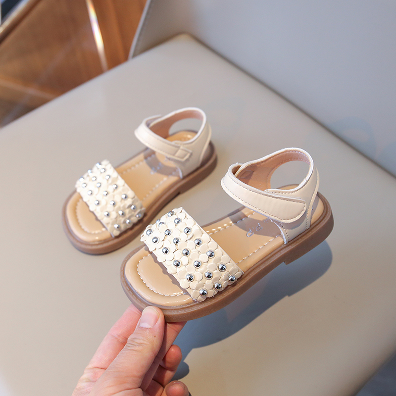 女童花朵露趾罗马凉鞋2025新款夏季宝宝公主鞋韩版软底防滑沙滩鞋