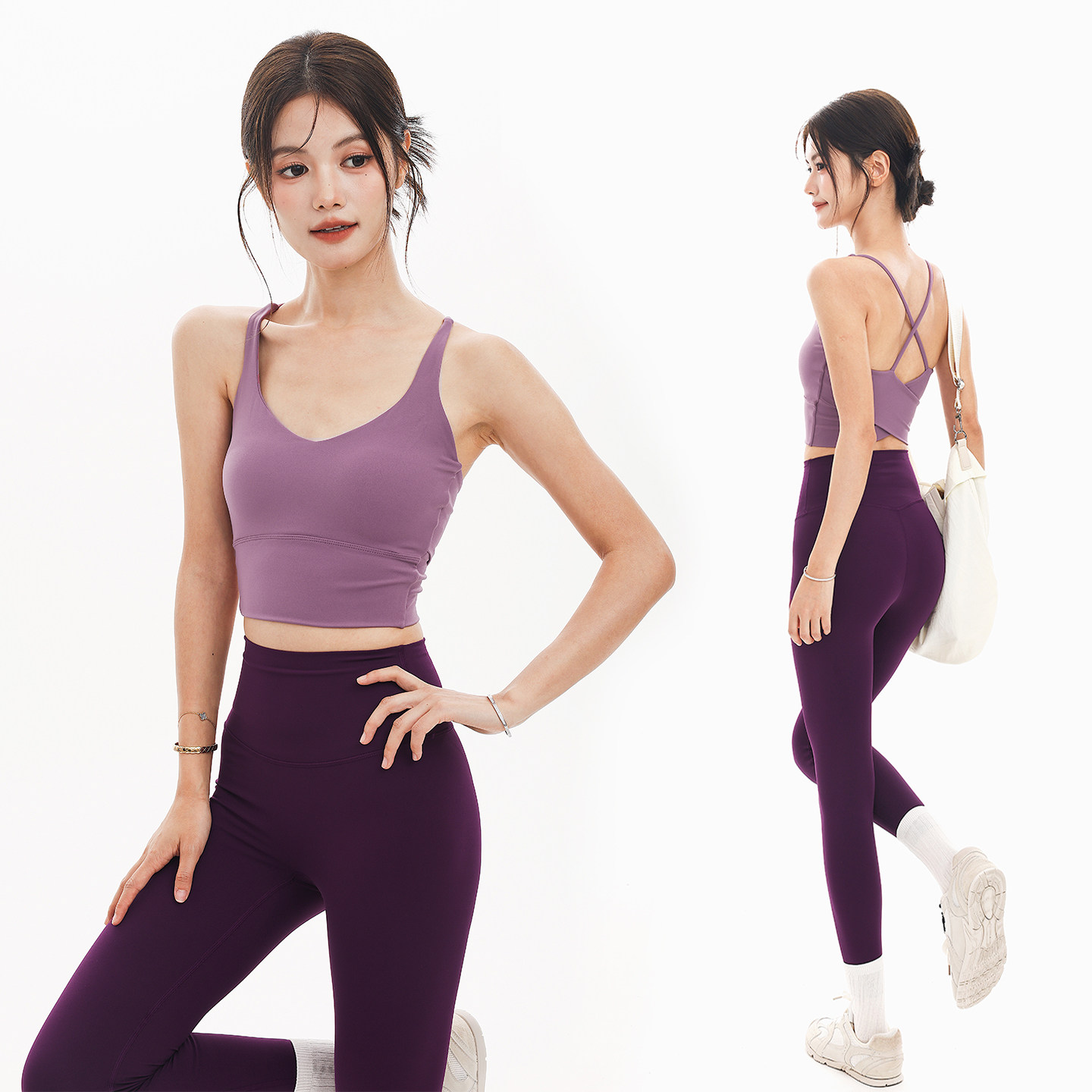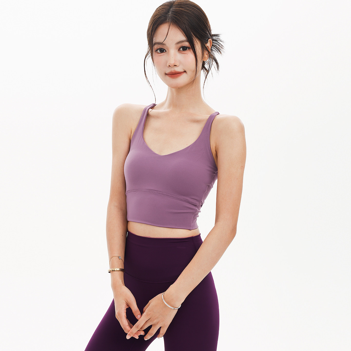 奔跑吧卡卡固定式胸垫细肩带防下垂瑜伽美背背心健身运动内衣文胸