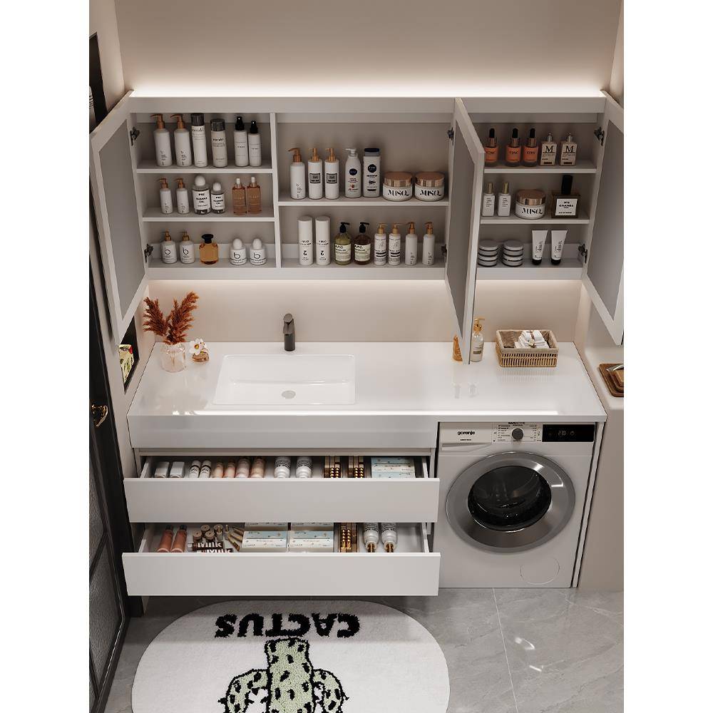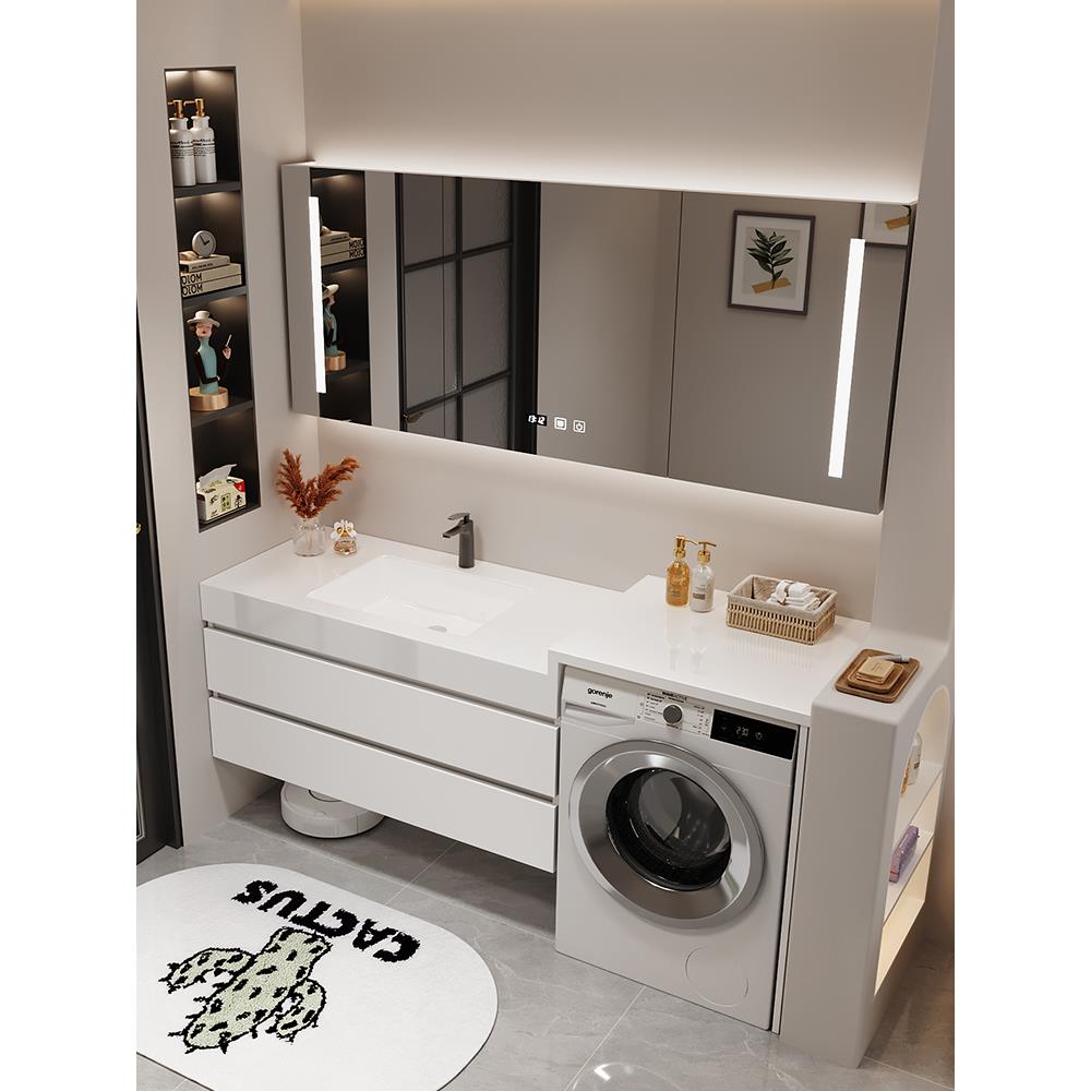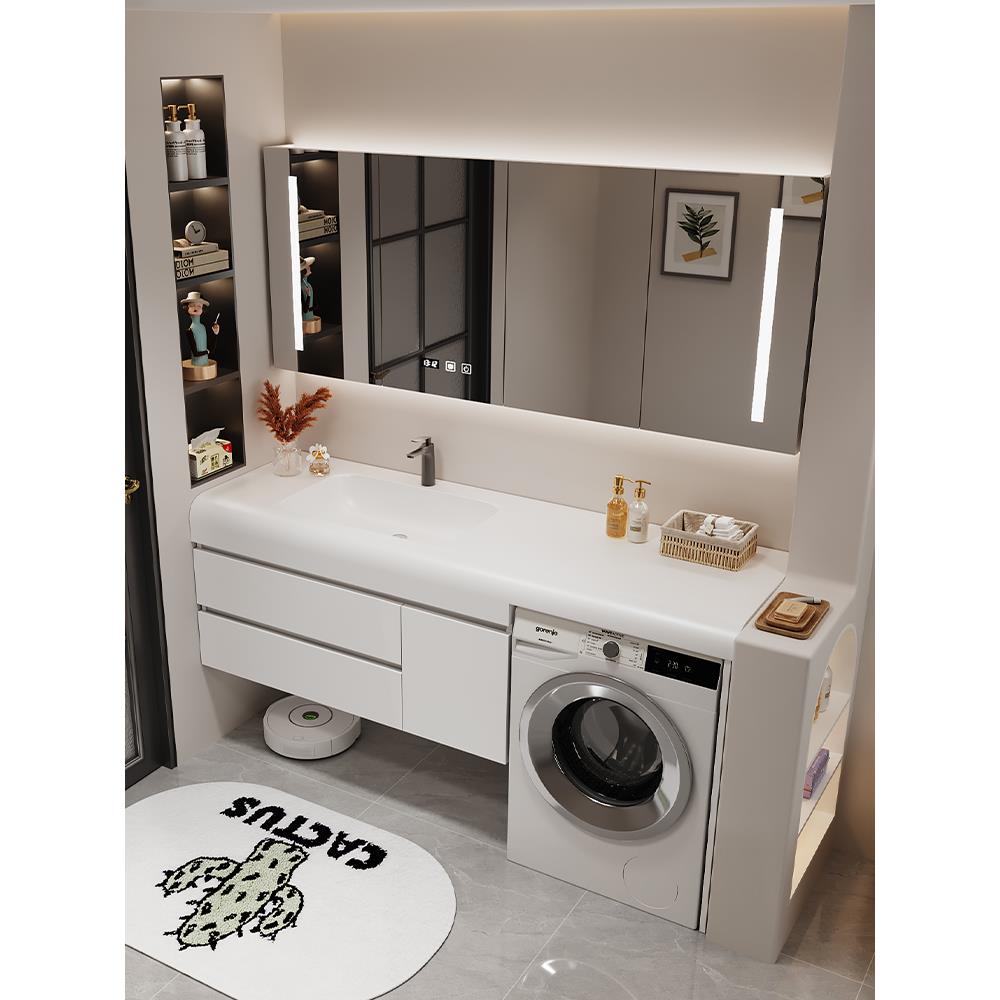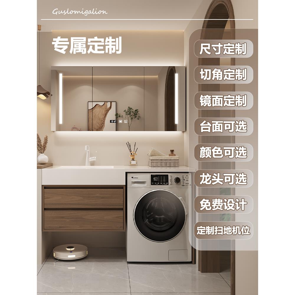 定制洗衣机一体浴室柜组合可丽耐阳台岩板陶瓷洗手盆卫生间洗漱台