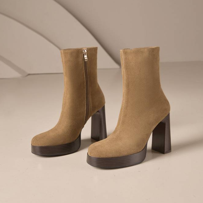 米小姐2025新款气质高跟短靴方头时装靴小个子不累脚防水台显瘦靴