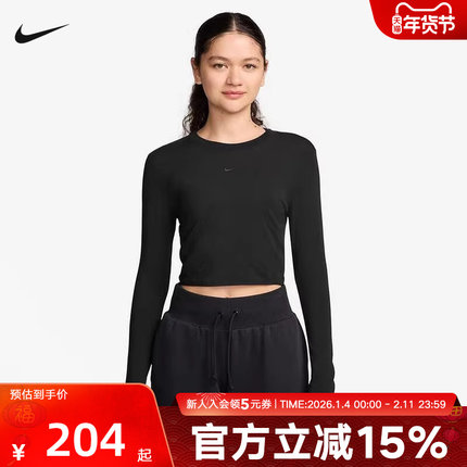 Nike耐克女子短款长袖上衣秋季新款休闲刺绣针织打底衫HF5323-010