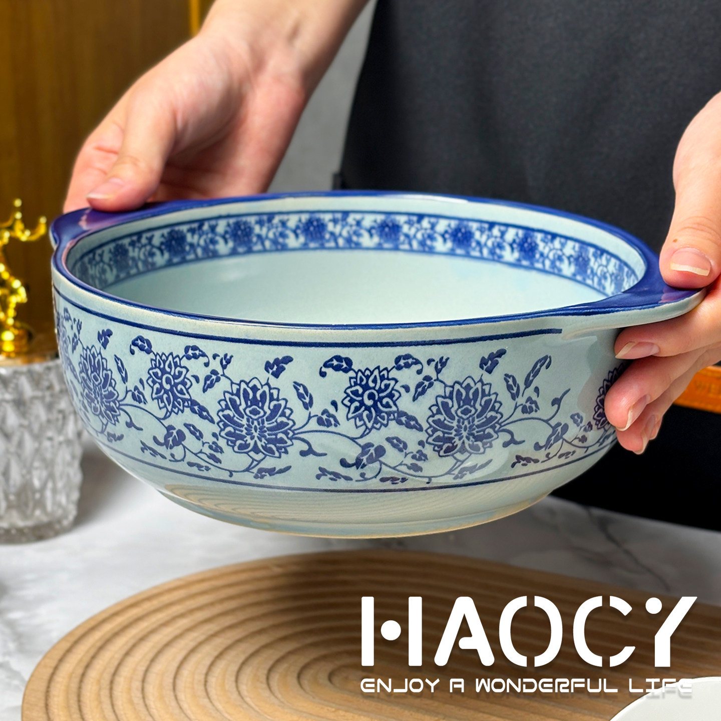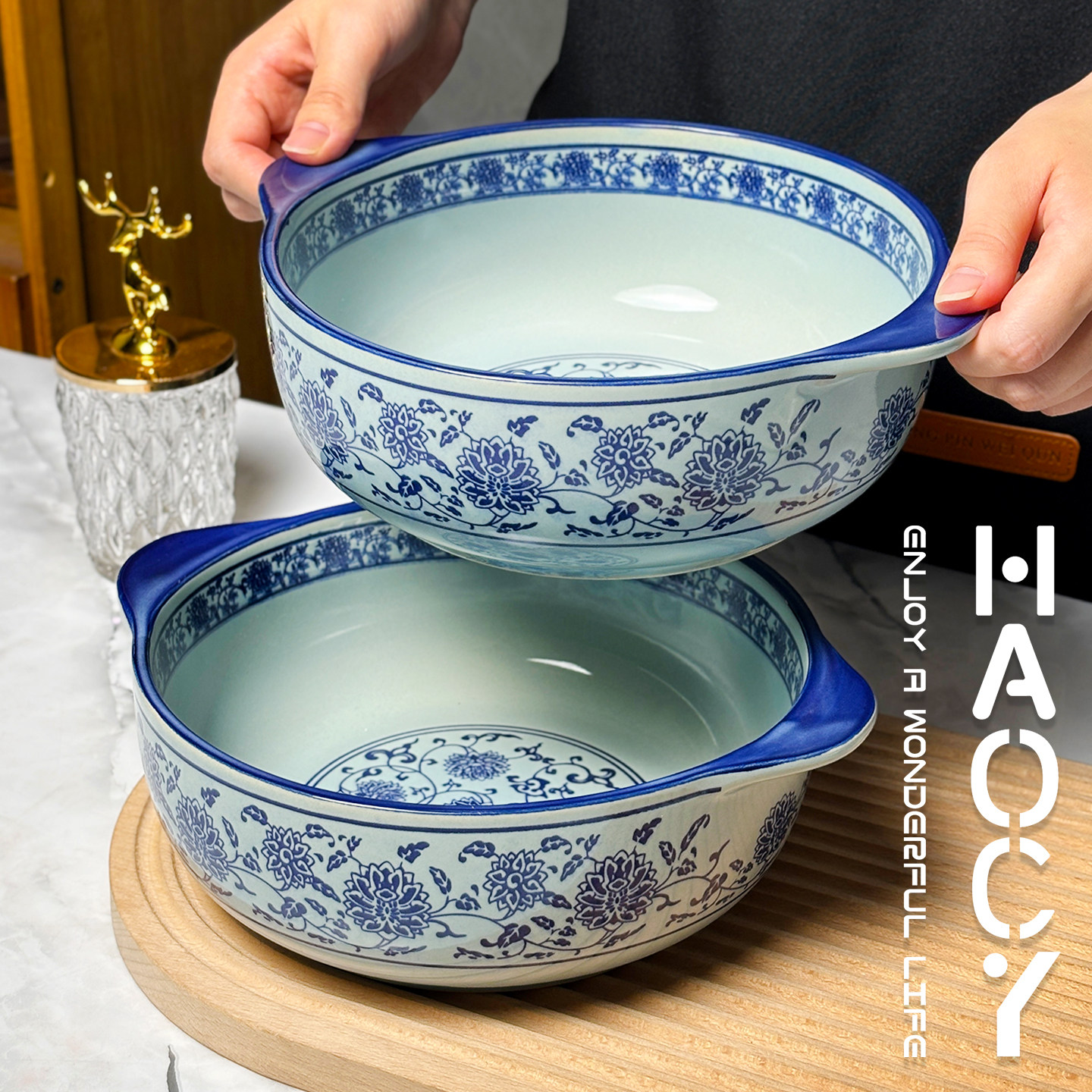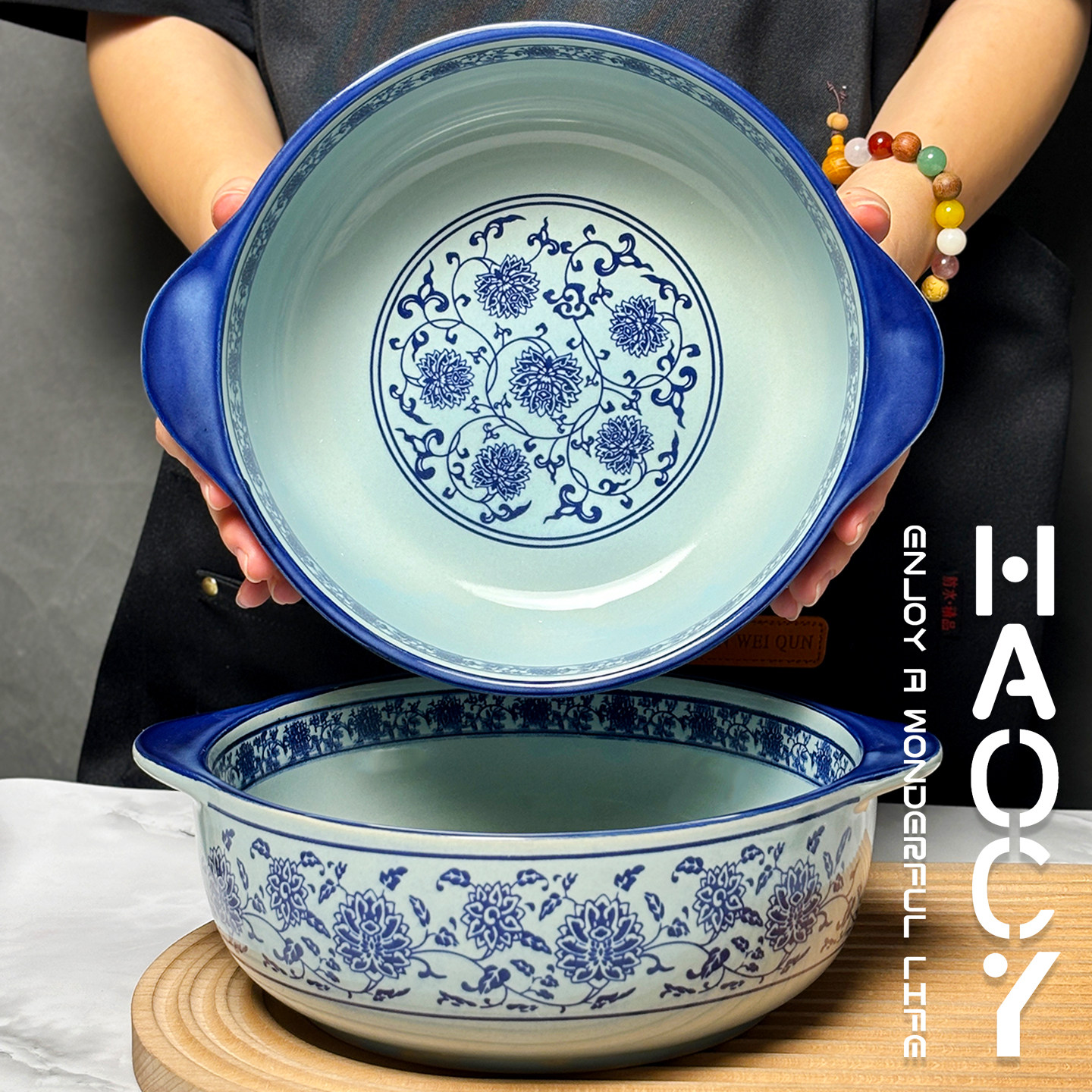 陶瓷家用青花瓷双耳碗大号牛肉面拉面碗2026新款大汤碗釉下彩餐具