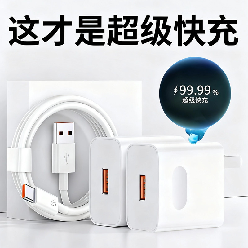 适用华为充电器66W超级快充头100W荣耀快充插头通用p30p40p50mate40 30pro20充电头6A数据线Tpyec充电线套装