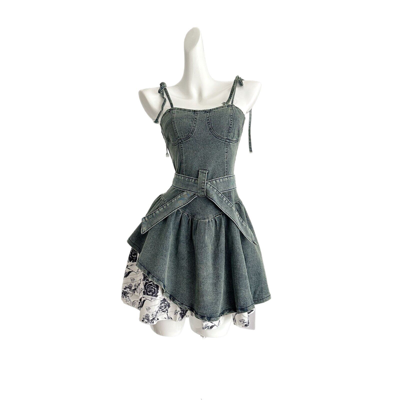 田曦薇同款蓝色玫瑰牛仔裙