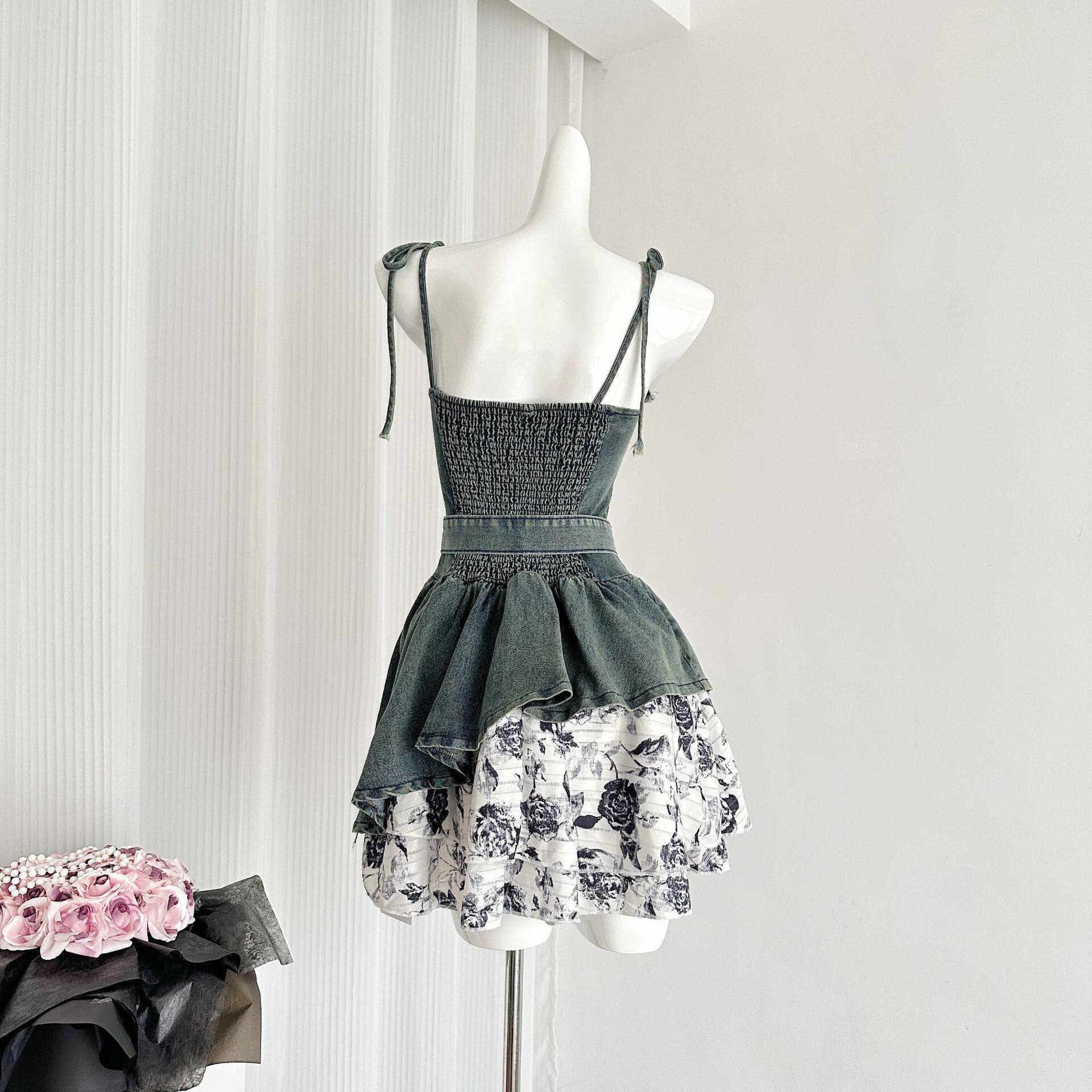 田曦薇同款蓝色玫瑰牛仔裙连衣裙女夏季2025新款显瘦辣妹吊带裙感