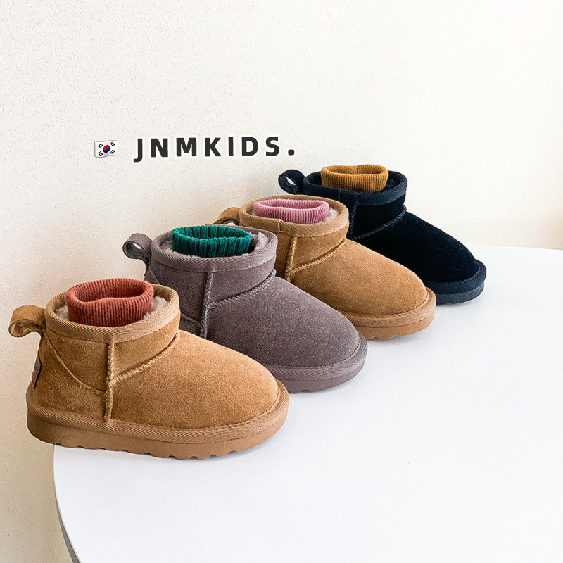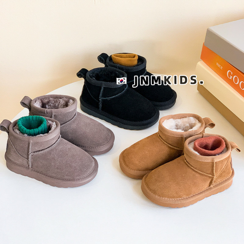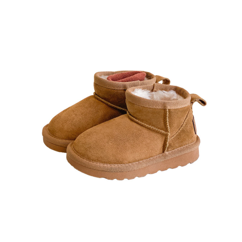 周冬雨同款儿童真皮雪地靴女童冬季加绒加厚男童短靴宝宝保暖棉靴