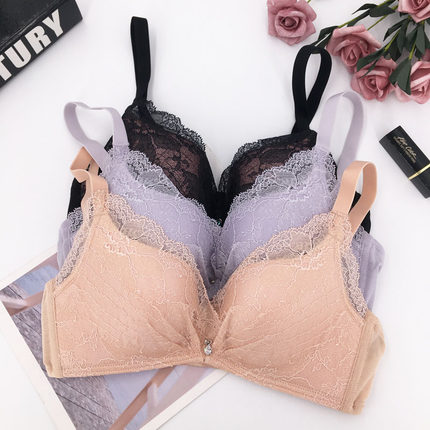 桑扶兰无钢圈内衣聚拢蕾丝上