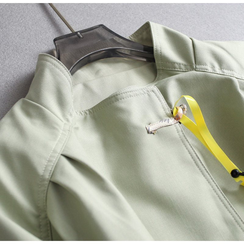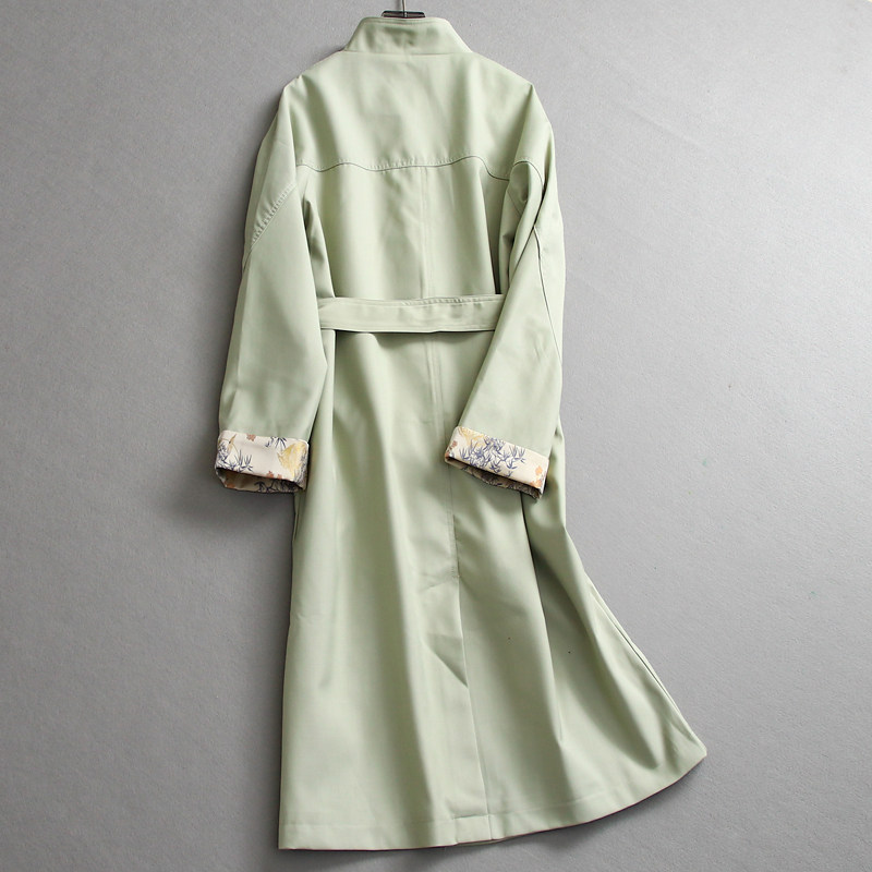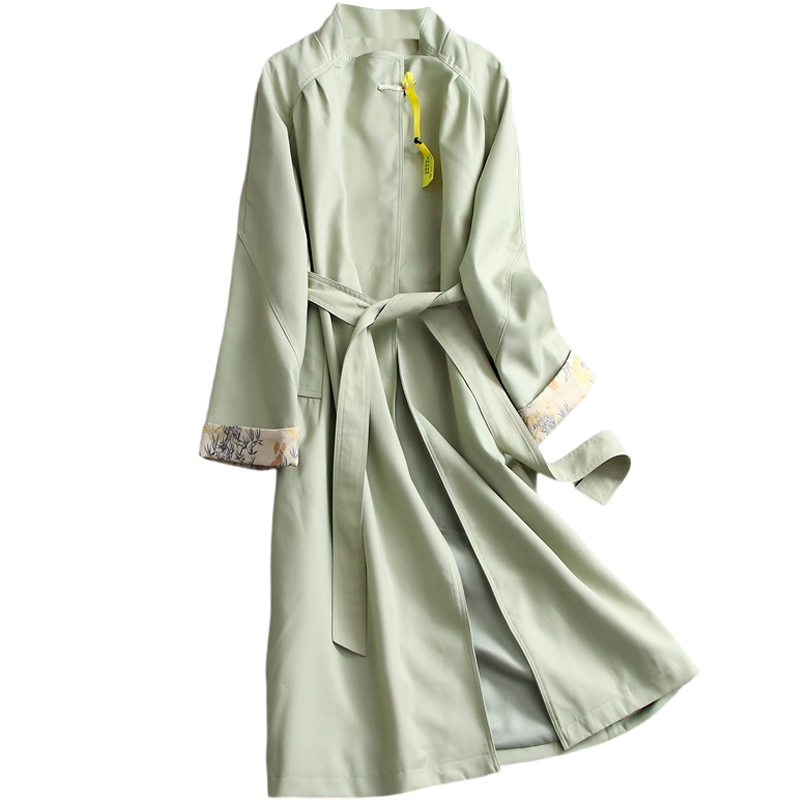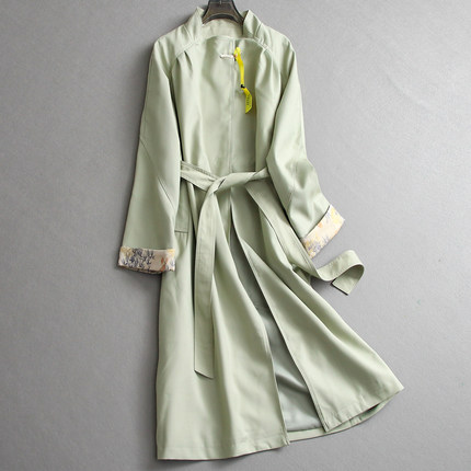 纯色宽松廓形提花卷边新中式轻国风长袖外套长款大衣女装风衣L197
