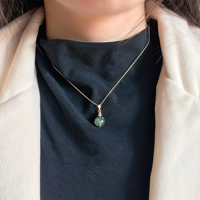 天然绿发晶项链绿色水晶吊坠女925纯银转运珠单坠锁骨链饰品礼物