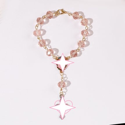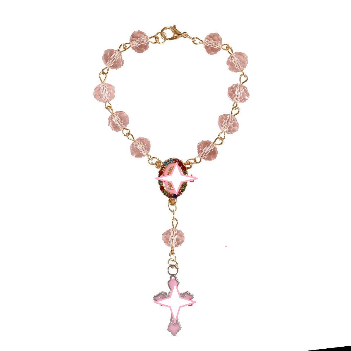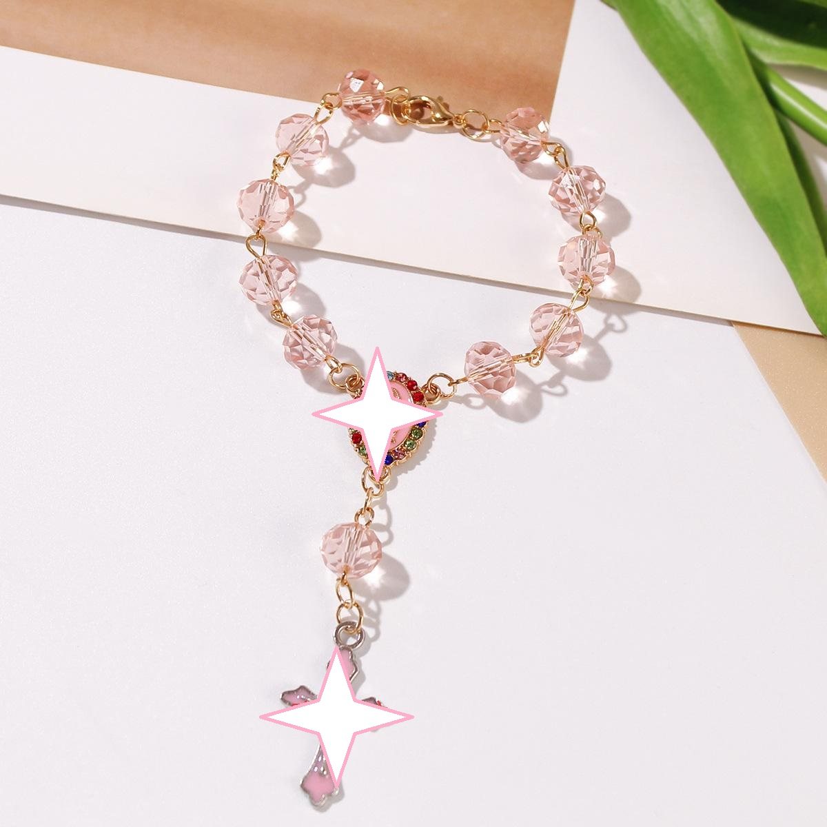 粉色水晶念珠十字架手链手指链串珠汽车后视镜挂饰
