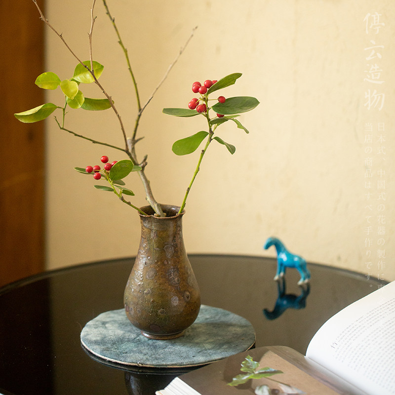 宋式柴烧风花入中式复古粗陶小花瓶手工花器迷你小号茶席禅意花插