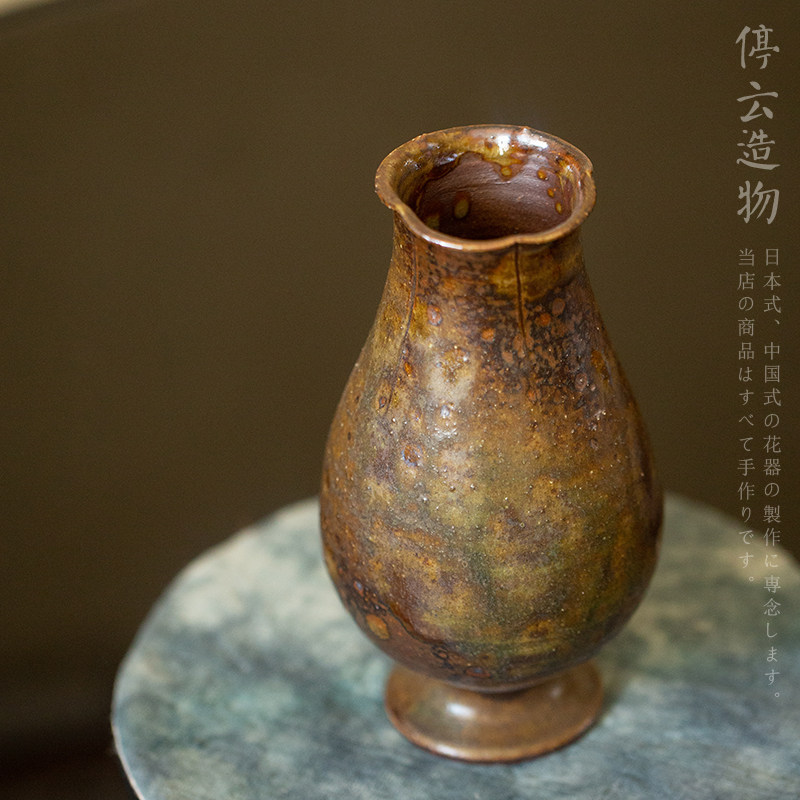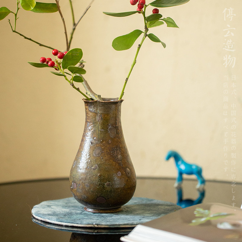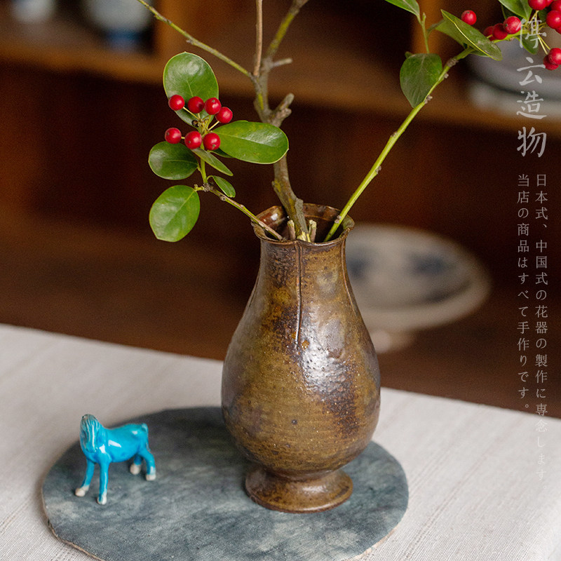 宋式柴烧花入中式复古粗陶小花瓶