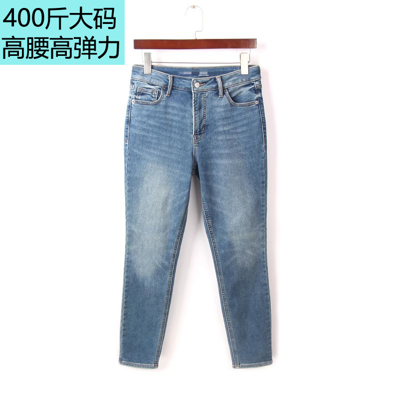 300斤加肥加大牛仔裤女 外贸秋冬加宽加厚高腰弹力加绒品质小脚裤