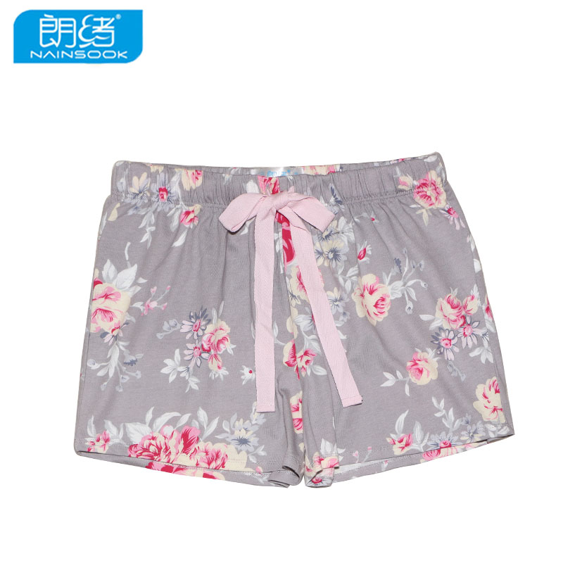 朗绪女休闲短裤针织全棉活性印花夏季学生睡裤沙滩裤年轻人短薄款
