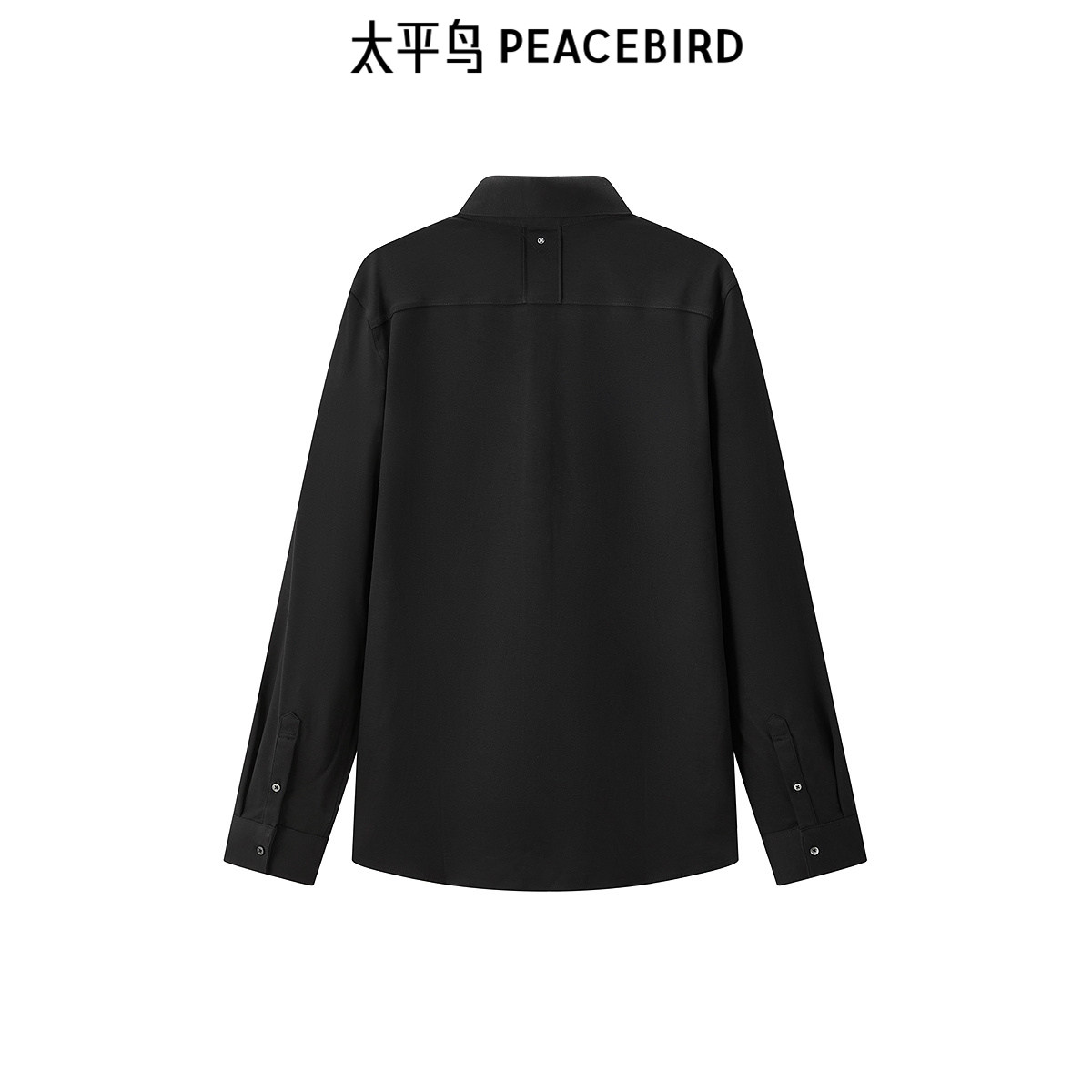 【商场同款】太平鸟男装衬衫24黑色修身衬衣潮 B1CAE3X20