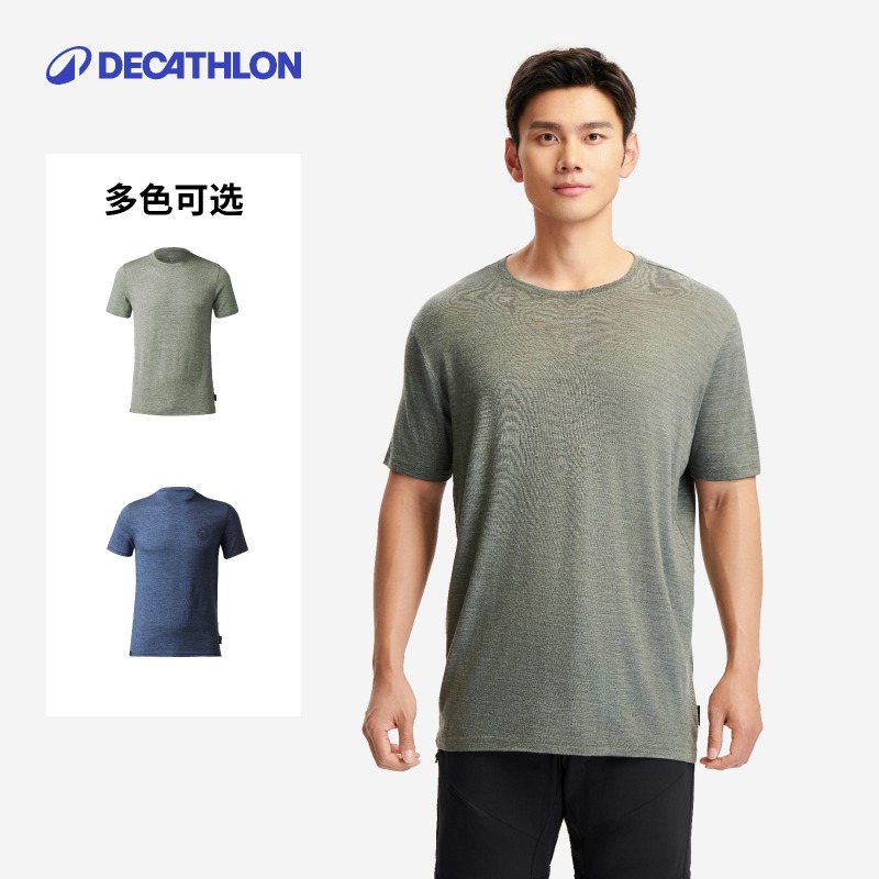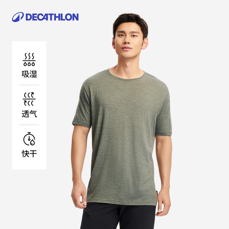 迪卡侬美利奴羊毛快干运动T恤登山徒步休闲上衣短袖户外男ODT1