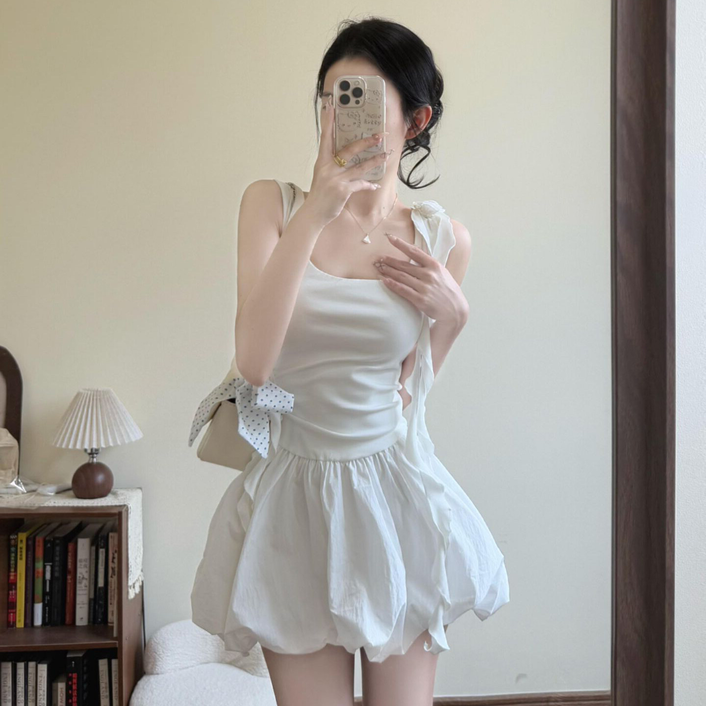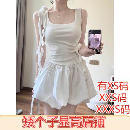 150cm显高女装春季小个子加小码XXXS针织飘带连衣裙背心花苞短裙