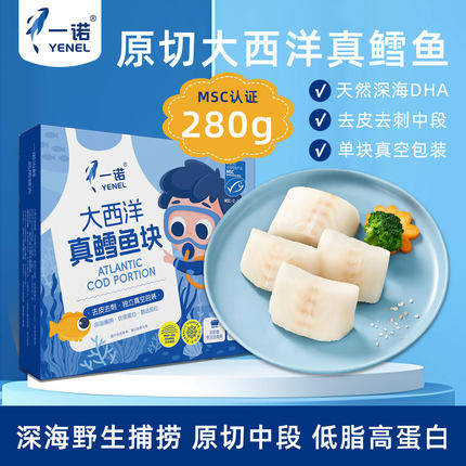 一诺大西洋真鳕鱼新鲜冷冻中段深海鳕鱼块生鲜送宝宝婴儿辅食食谱