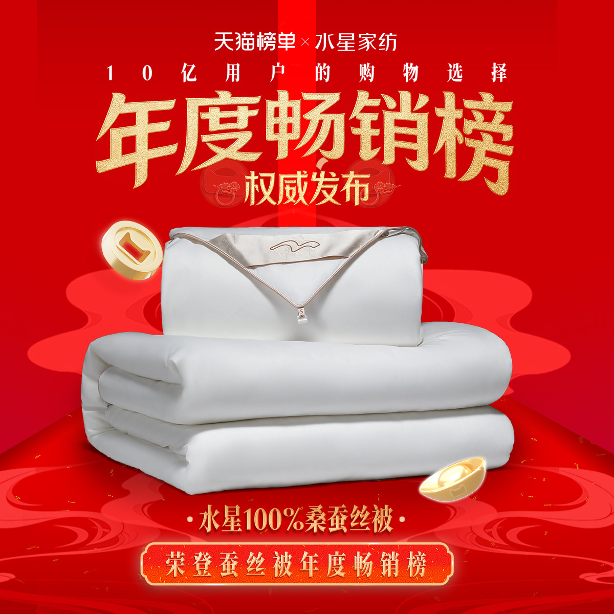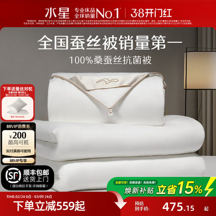 水星家纺100%桑蚕丝被春秋被抗菌四季被二合一婚庆被子母被冬被