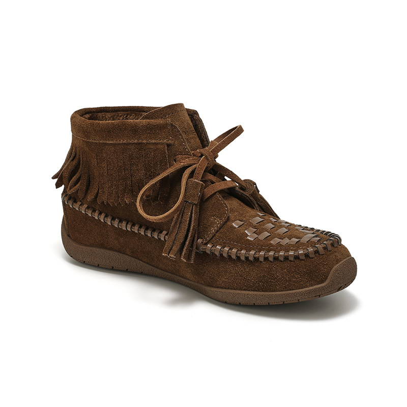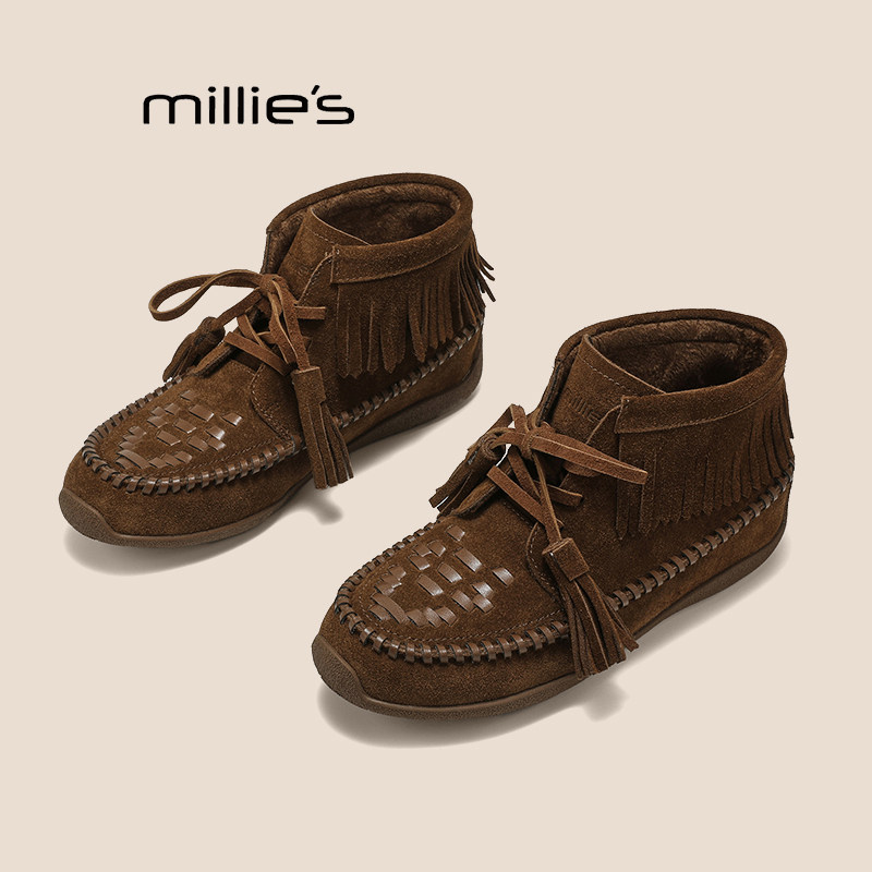 MILLIE'S/妙丽平底复古绑带短靴女2025年秋季新款圆头系带马丁靴