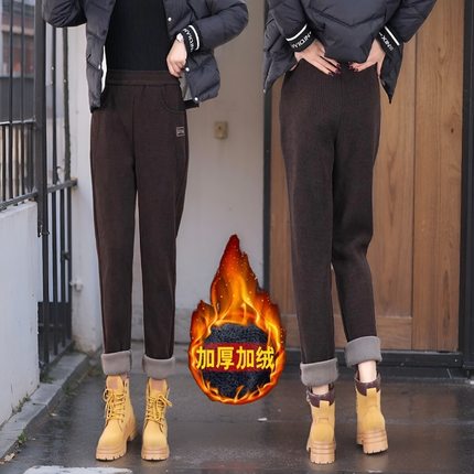 高档秋冬季加绒灯芯绒裤子女高腰加厚2025年新款小个子直筒哈伦裤