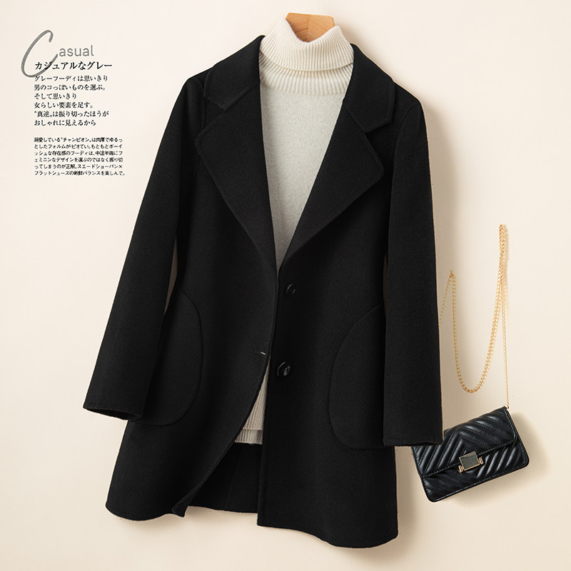 品牌新款秋冬双面羊毛大衣女中长款西装高端修身小个子羊毛呢外套