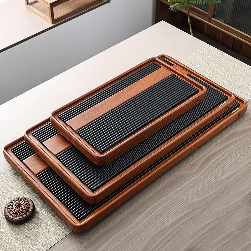 双色电木款茶盘速干排水大号家用简约茶台新中式功夫竹制茶具托盘