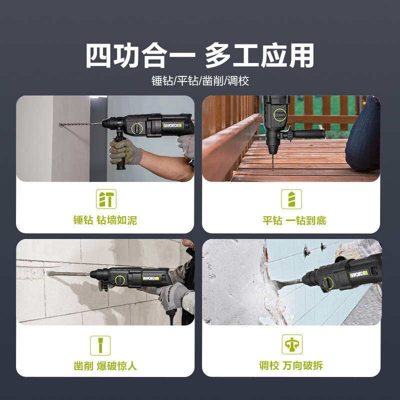 威克士2.8KG轻型电锤WU345冲击钻两用电镐大功率打混凝土WU327D