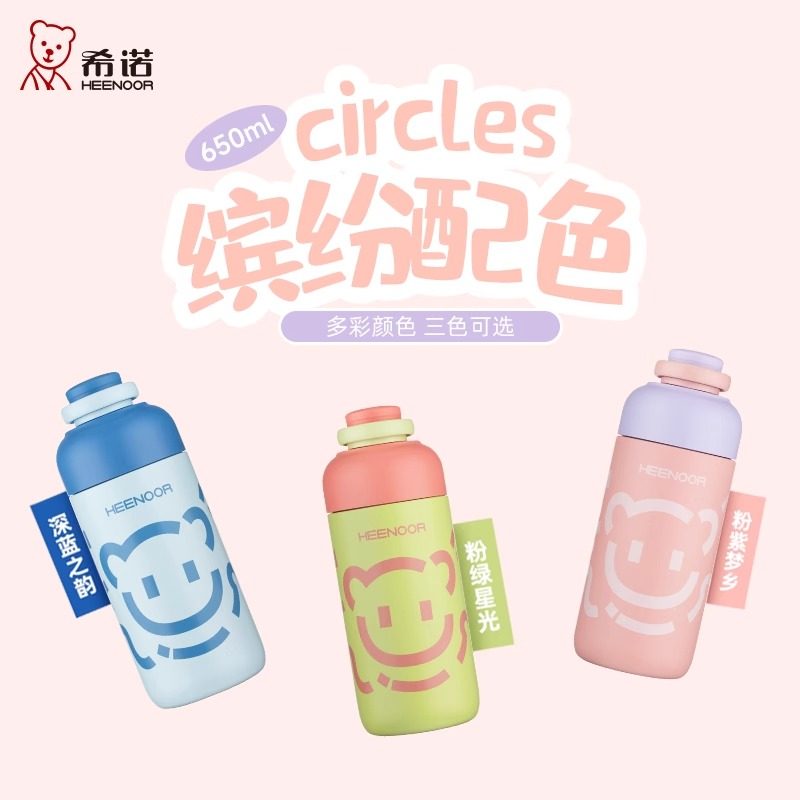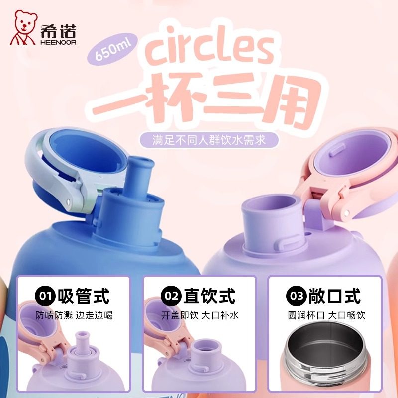 希诺新款保温杯女生高颜值可爱学生专用杯子便携水壶吸管儿童水杯