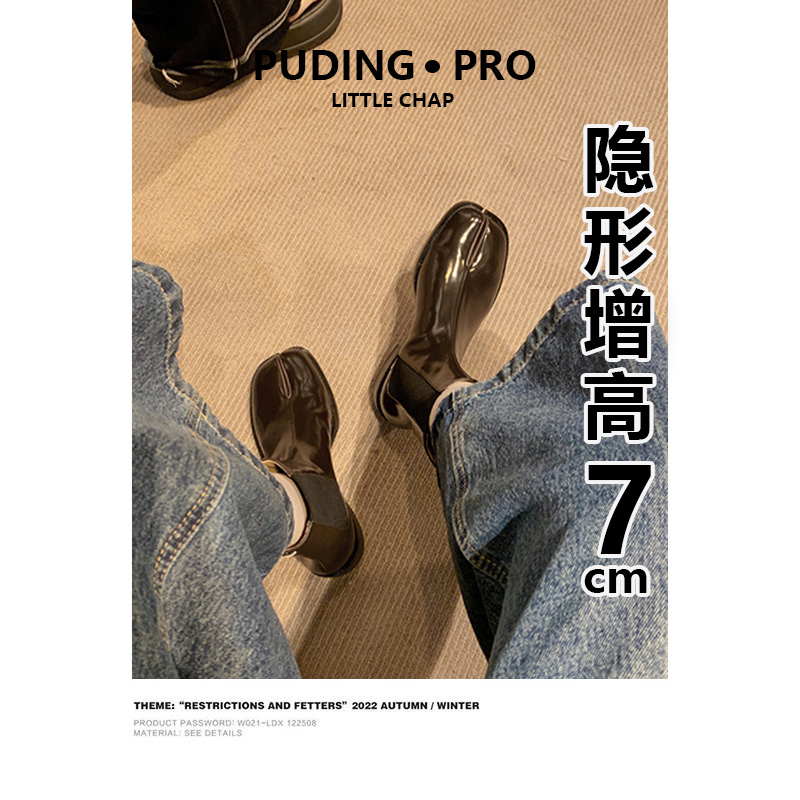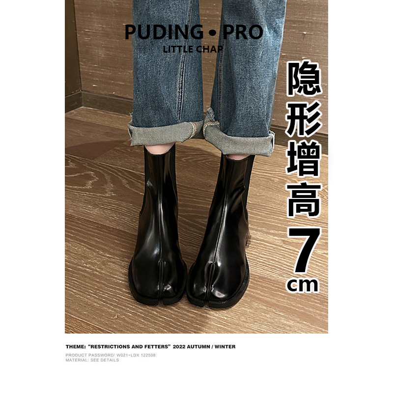 真皮版英伦风分趾靴子女2025新款圆头夹趾切尔西靴瘦瘦靴粗跟短靴
