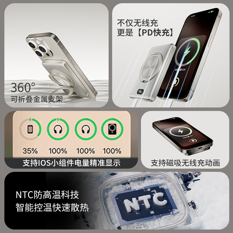 充电宝磁吸2026新款适用苹果17专用超薄小巧便携式10000毫安快充大容量无线款magsafe移动电源带上外接轻薄
