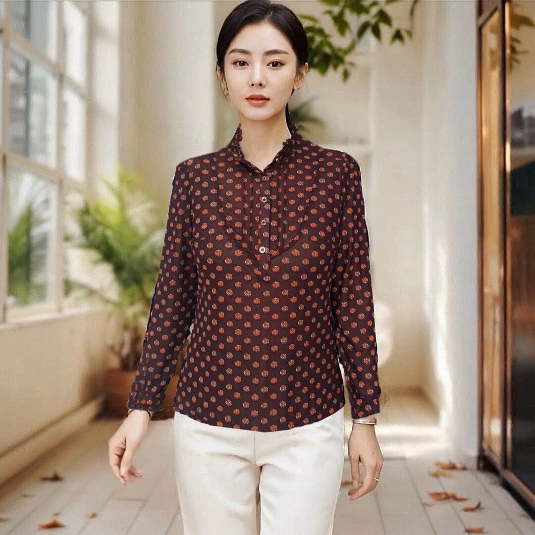 锦依罗专柜正品新品中年女夏装台湾纱短袖T恤时尚气质妈妈小衬衫