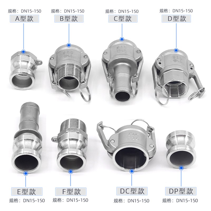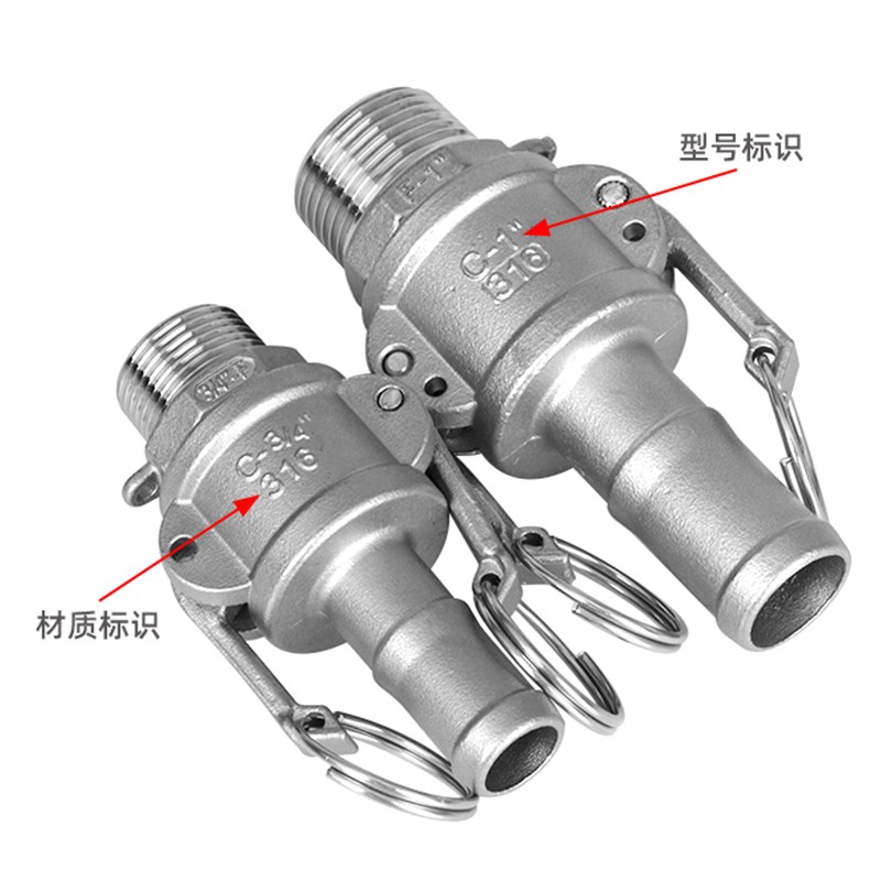 快速接头C+F型组合一端插管一端外丝304不锈钢扳把式卡接水油软管