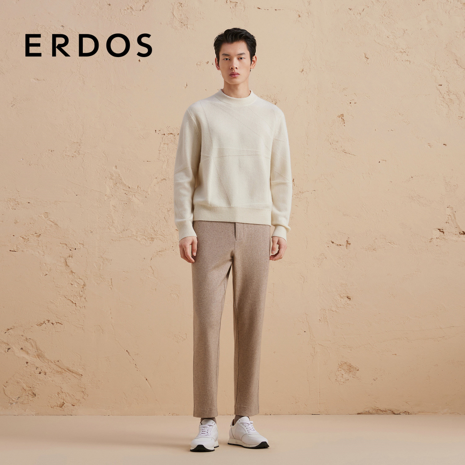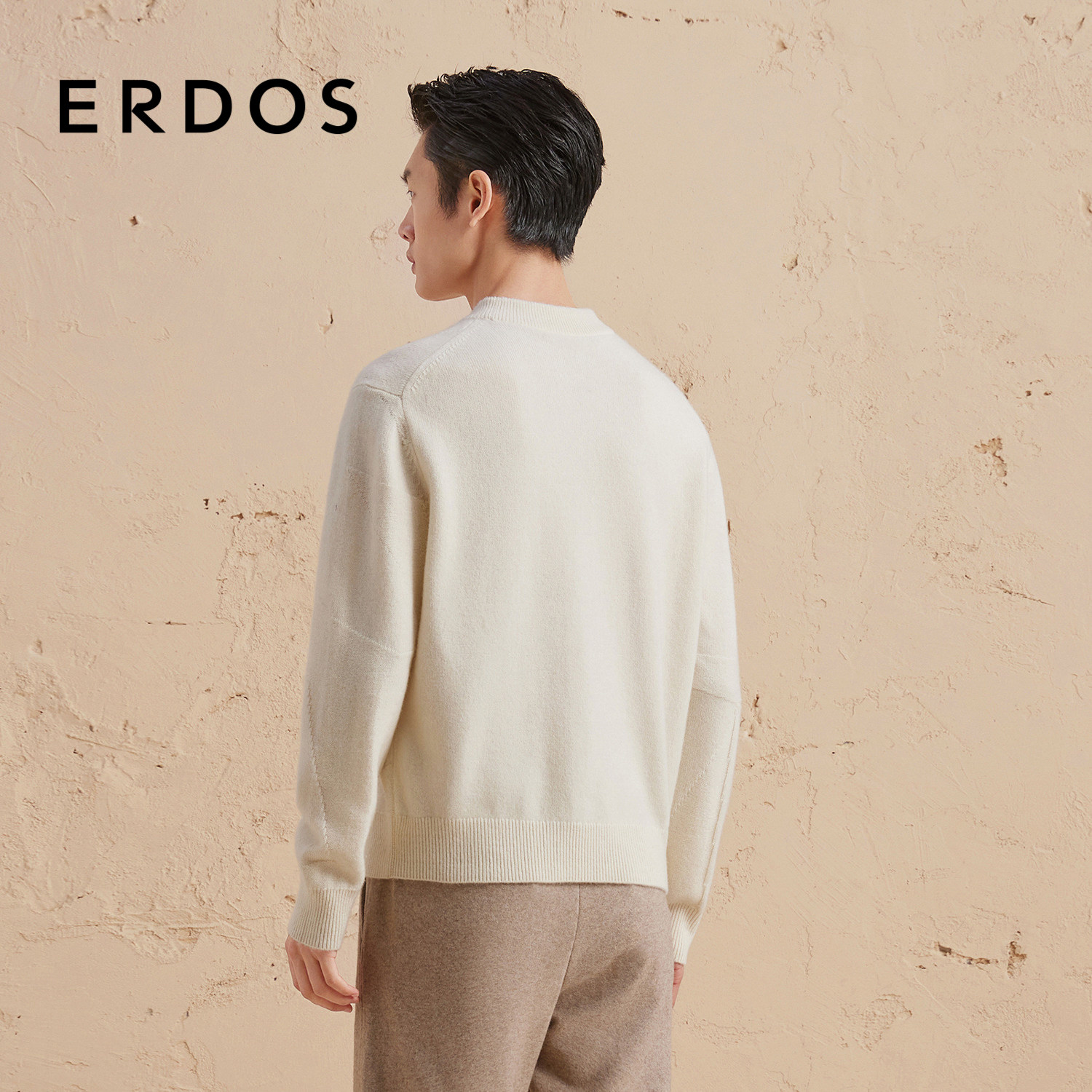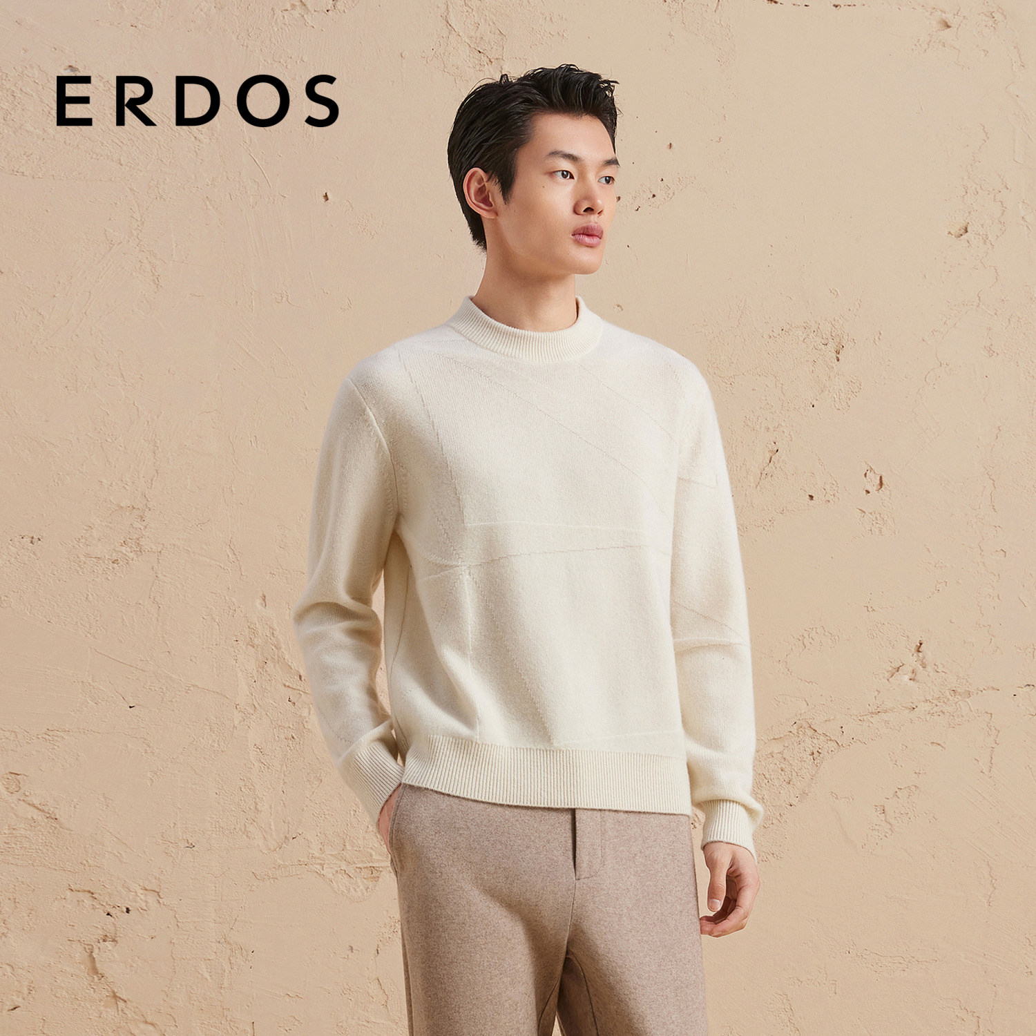 ERDOS 男装羊绒衫秋冬无染色白绒半高领翻花保暖针织衫