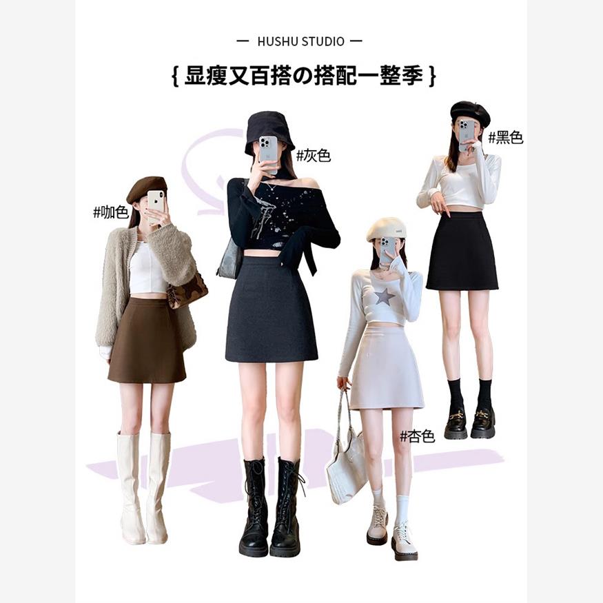 灰色毛呢半身裙女2025新款秋冬季高腰显瘦小个子a字辣妹包臀短裙