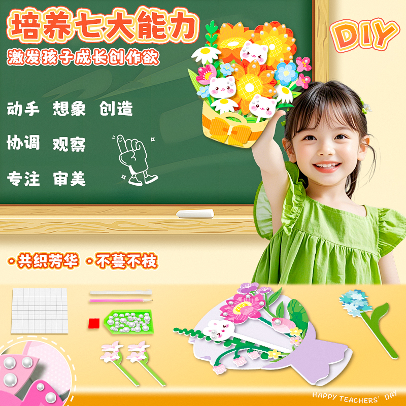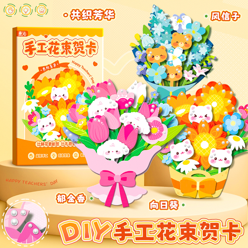 2025新款教师节贺卡高级感diy材料包手工3d立体花束儿童幼儿园小学生送给老师的节日礼物高颜值创意实用精致