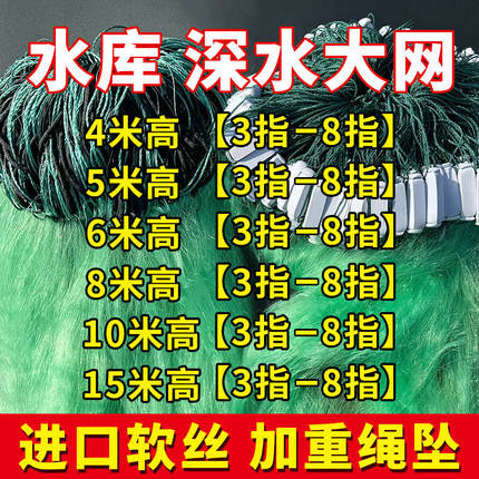 10米15米高渔网粘网三层沉网捕大鱼网加重绳坠进口丝网沾鲢鱼挂网