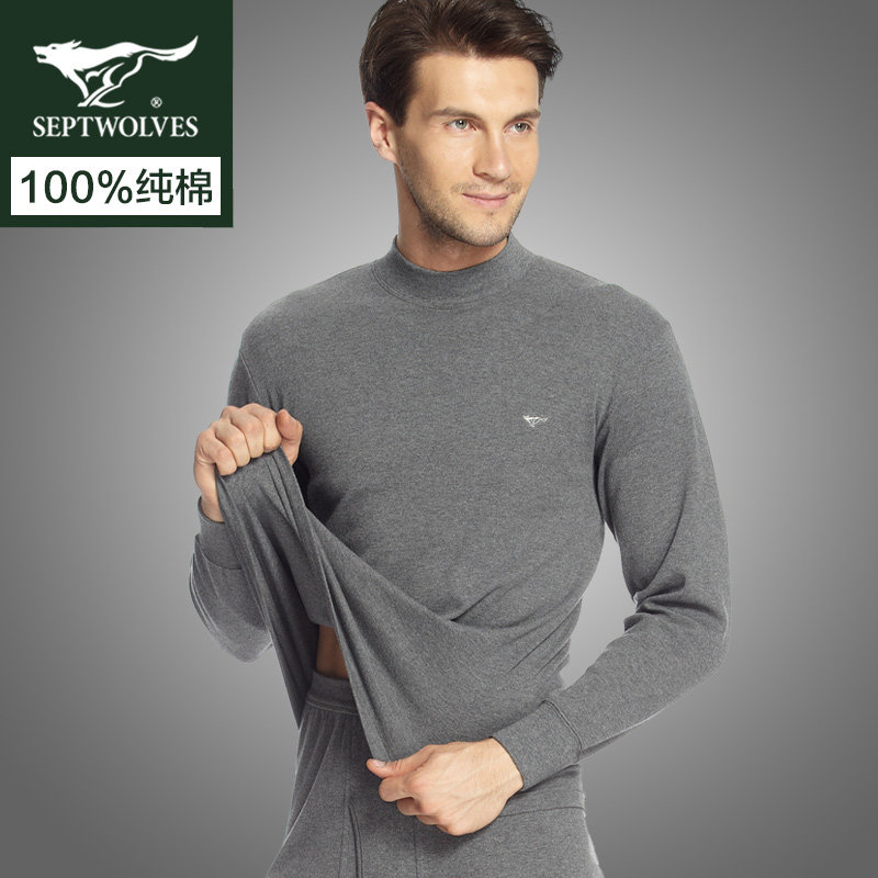 七匹狼男士保暖内衣 男纯棉 薄款打底棉毛衫中领全棉秋衣秋裤套装