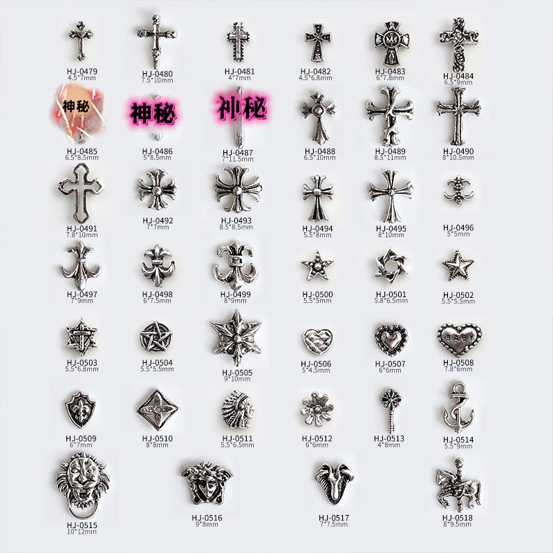 2025神秘十字架合金复古美甲饰品古感女神木马船锚狮子星指甲装饰